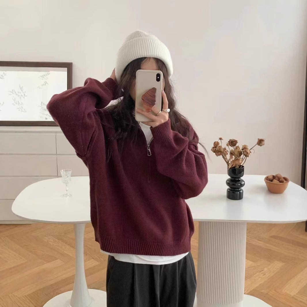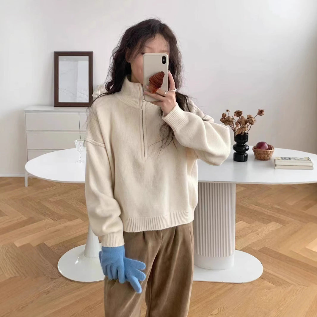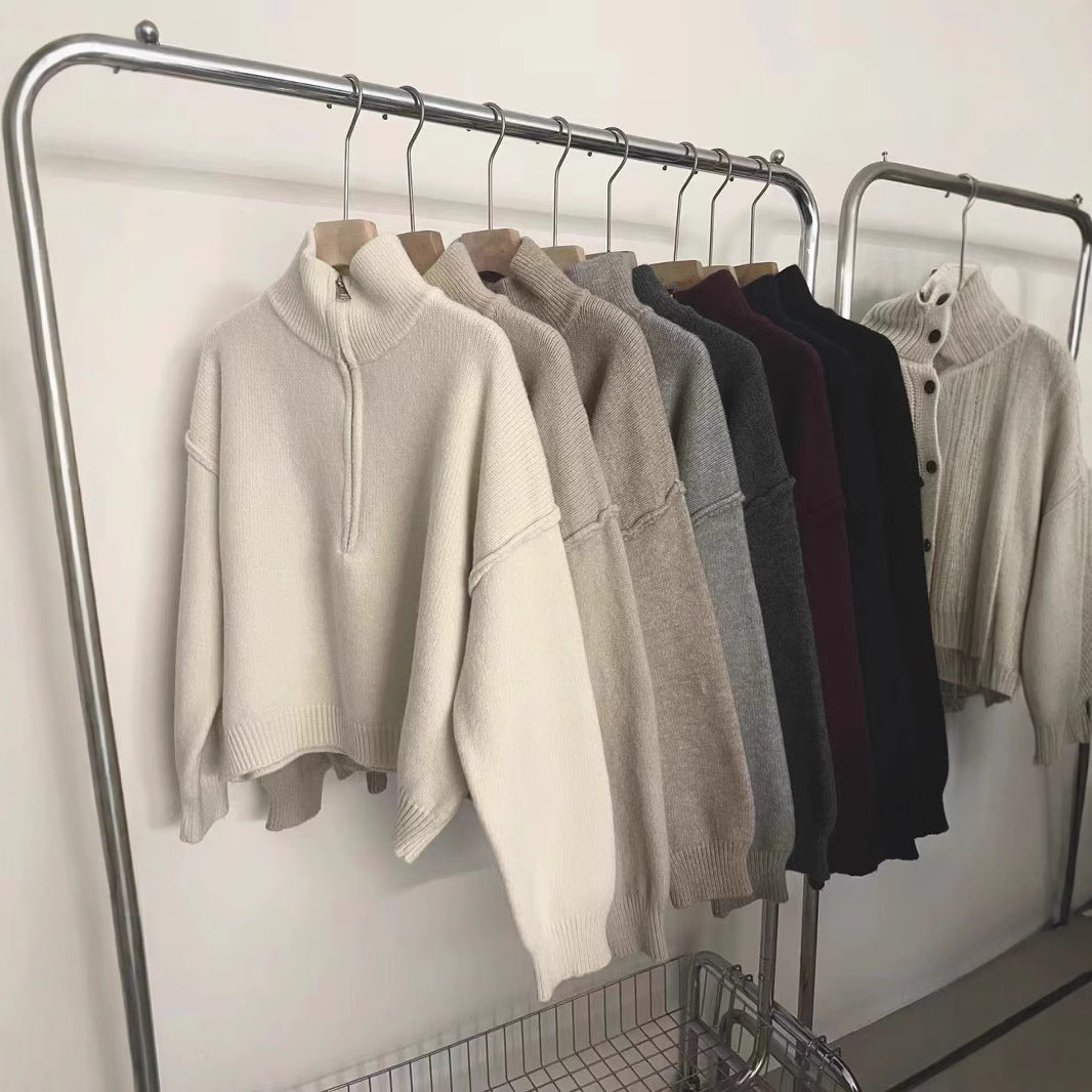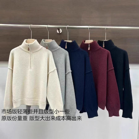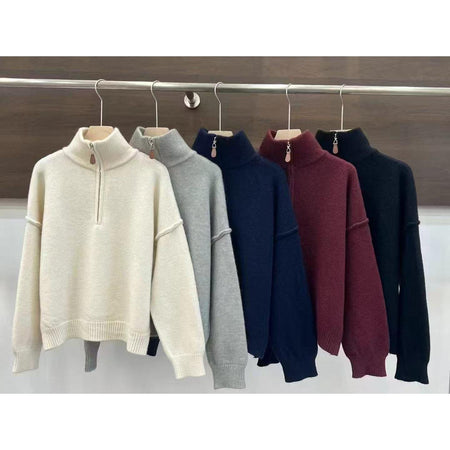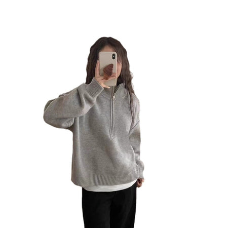 ✨ Upgrade your wardrobe with this half zip vertical collar pullover sweater for women — the perfect blend of casual comfort and understated elegance. The solid-color knit design is timeless, while the half-zip detail adds a modern twist.