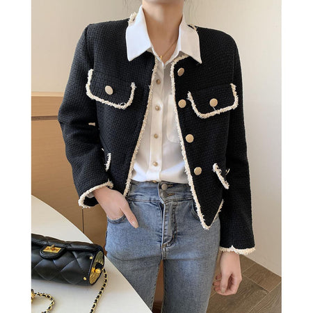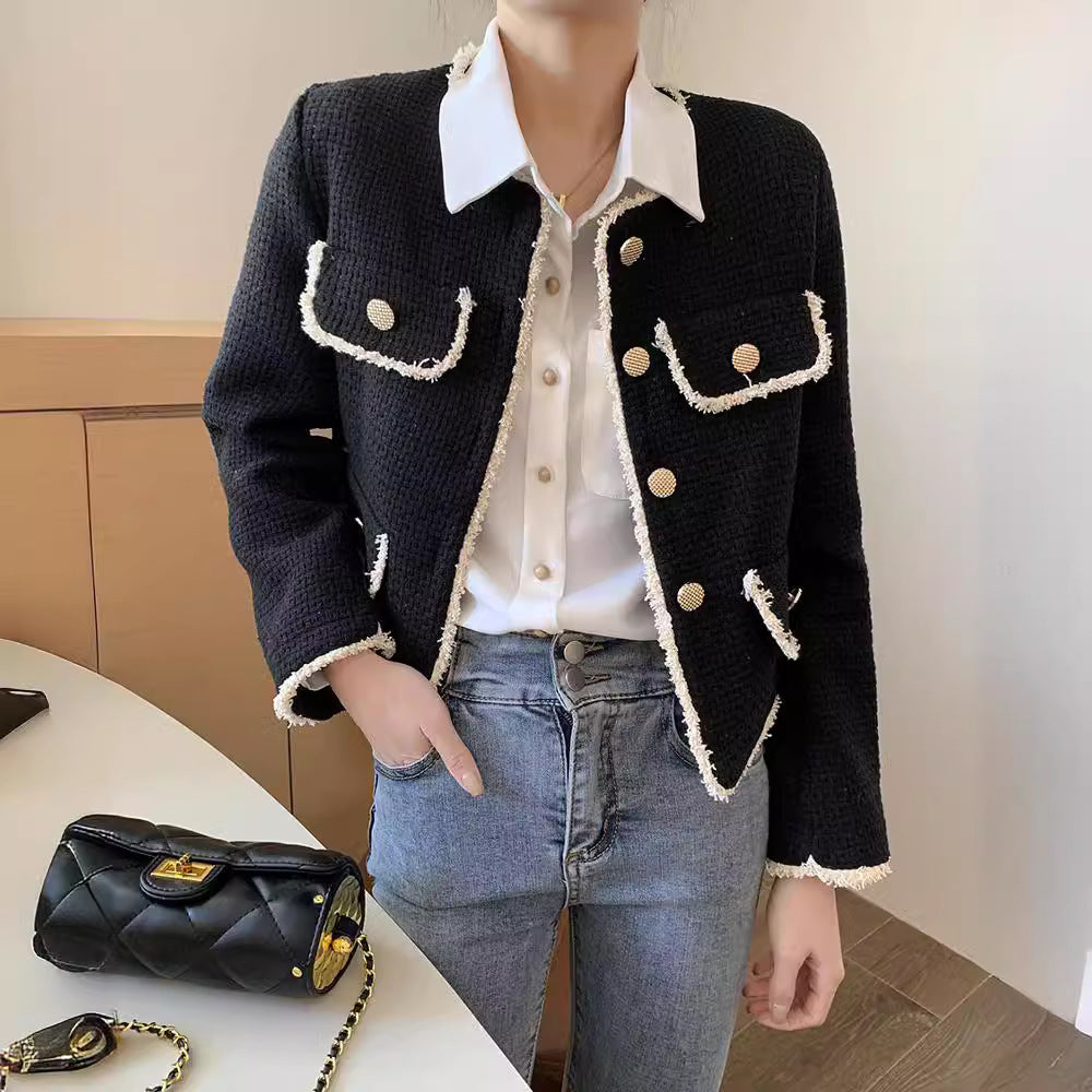 Crafted from premium tweed fabric, this jacket provides warmth and durability while maintaining a soft and comfortable feel. The short cut and structured silhouette accentuate the figure, while the retro Chanel-inspired design adds timeless sophistication. Pair it effortlessly with skirts, trousers, or dresses to create a polished socialite or casual chic look 👗✨.