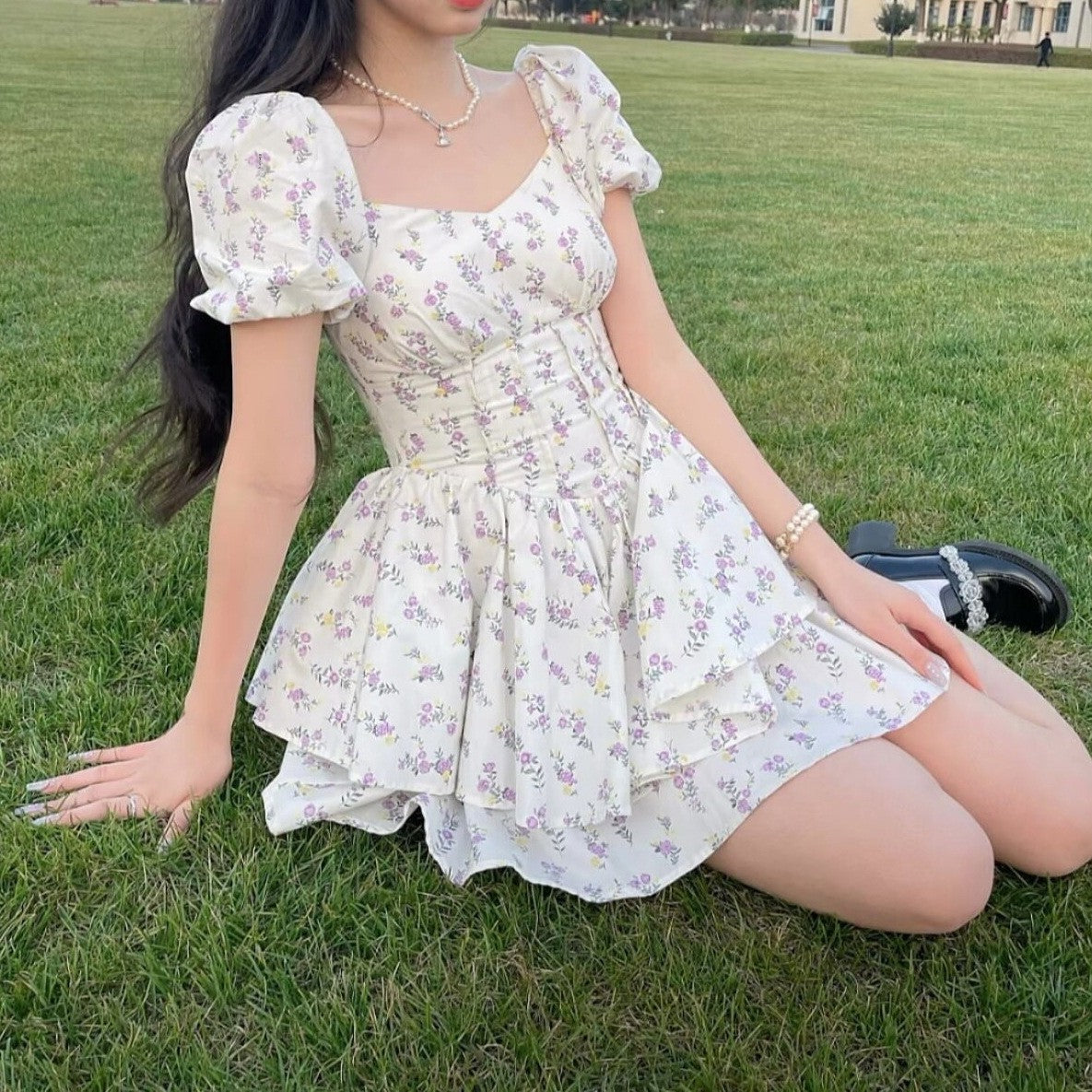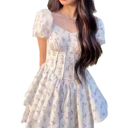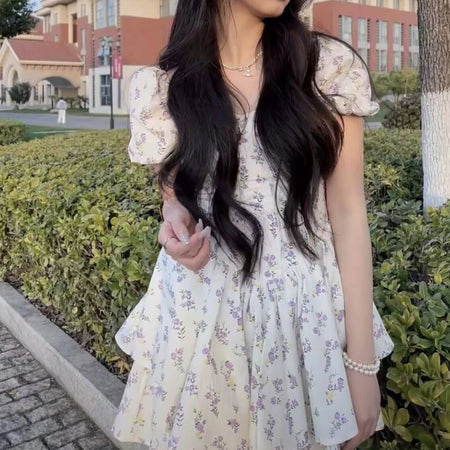 Square Collar & Bubble Sleeves: Combines a trendy square collar with playful bubble sleeves for a fashionable look.