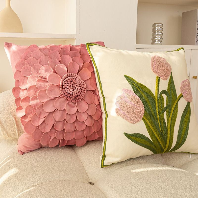 French Green Tulip Embroidered Pillowcase β Sofa Decor