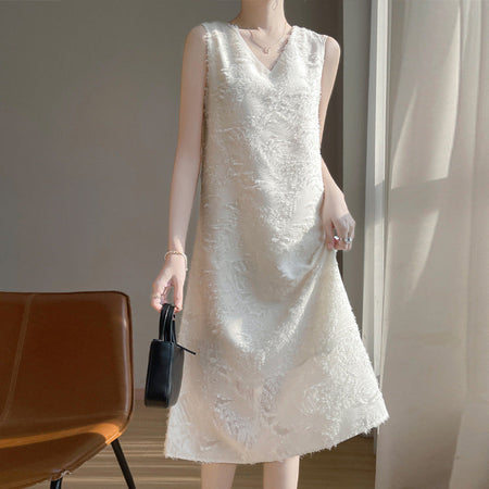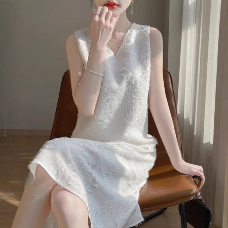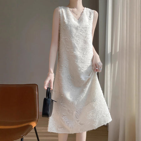 Embrace timeless elegance with this 🌸 French Style Sleeveless V-neck Dress, a perfect choice for sophisticated summer occasions.