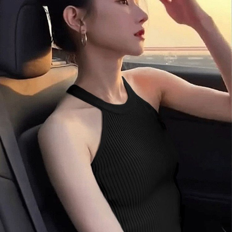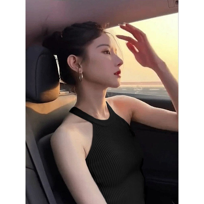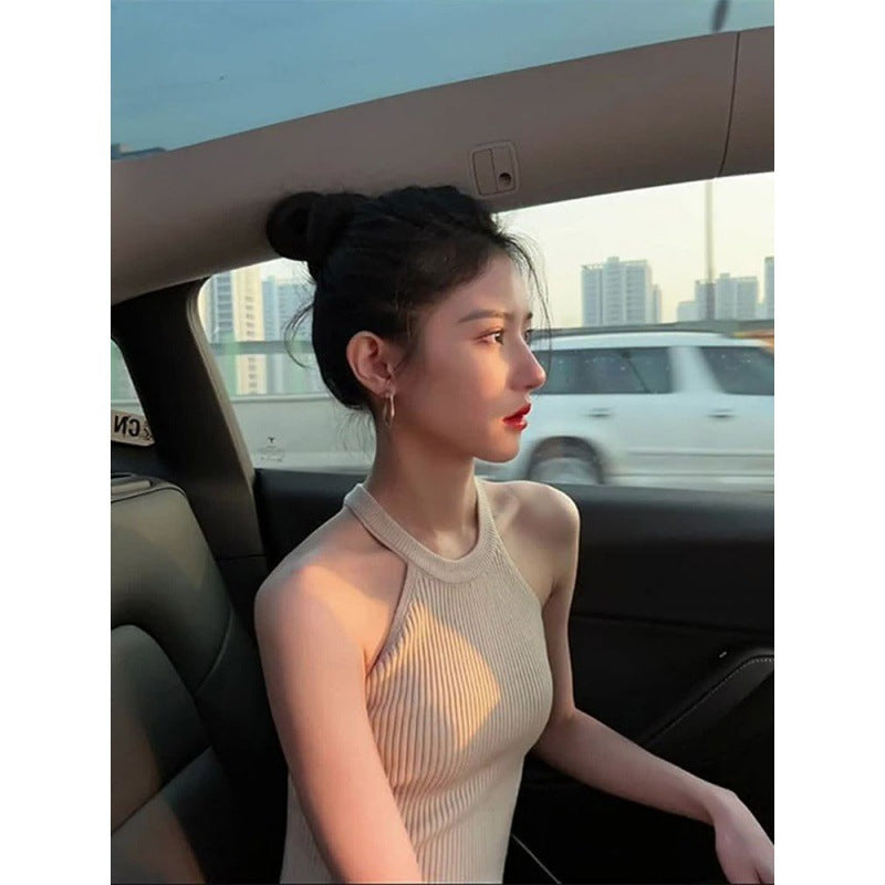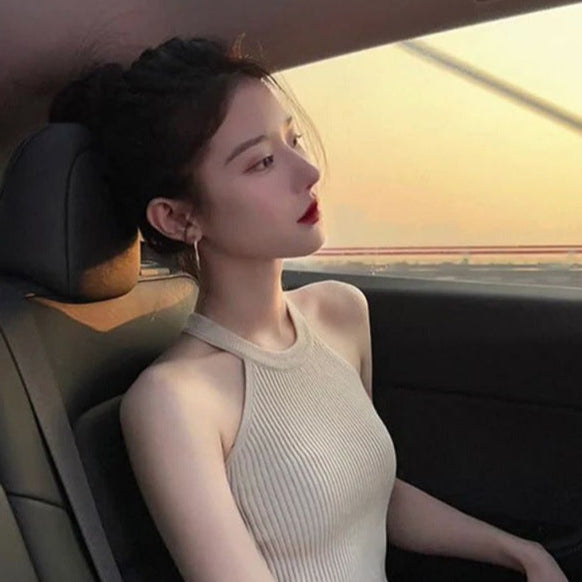 Women's French-Style Halter Neck Knitted Sling Top – Elegant &