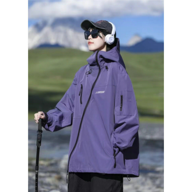 Breathable and Moisture-Wicking: Ideal for layering over light clothes, the jacket’s fabric allows for breathability, and moisture-wicking properties keep you dry throughout the day.