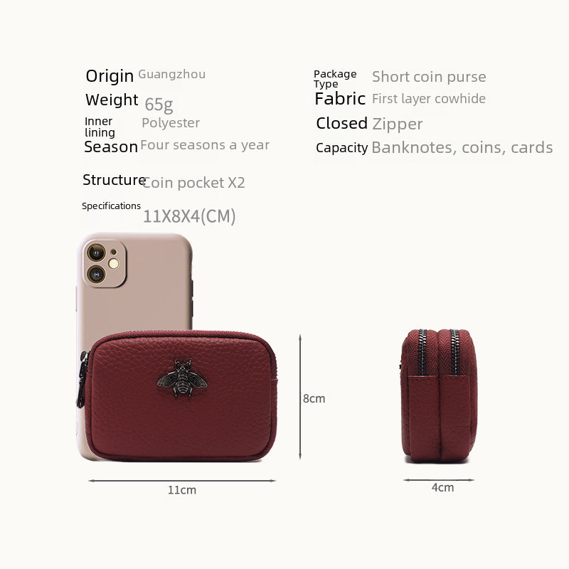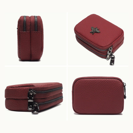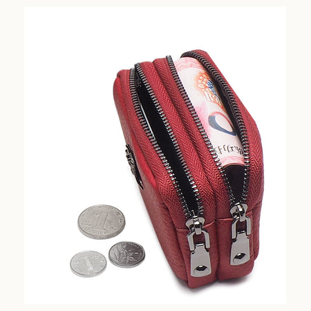 Cowhide Double Zipper Coin Purse โ Mini Leather Wallet