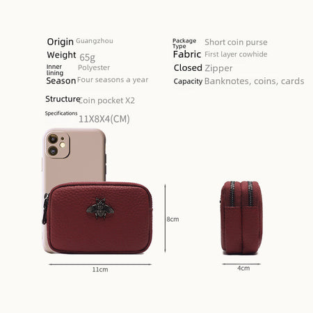 ๐งท๐ผ Sleek meets cute! This genuine leather coin purse features a double-layer zipper and compact design, making it a go-to for modern women. Store coins, cash, and keys with ease โ all in one palm-sized beauty.