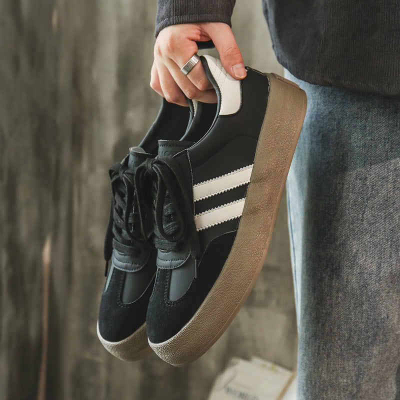 Inspired by classic German training shoes, this design emphasizes practicality, comfort, and timeless aesthetics. The leather construction helps maintain shape, while the overall fit supports all-day wear without pressure. Whether worn solo or as a couple’s matching choice, these shoes deliver both function and style.