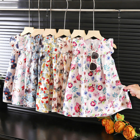 Girls’ 2025 Flying Sleeve Chiffon Floral Dress