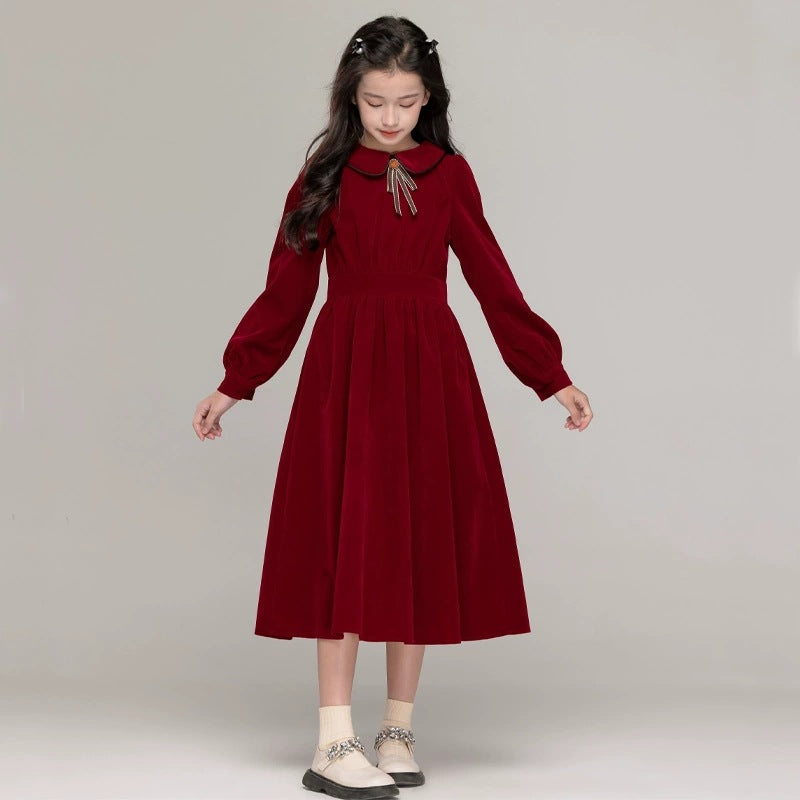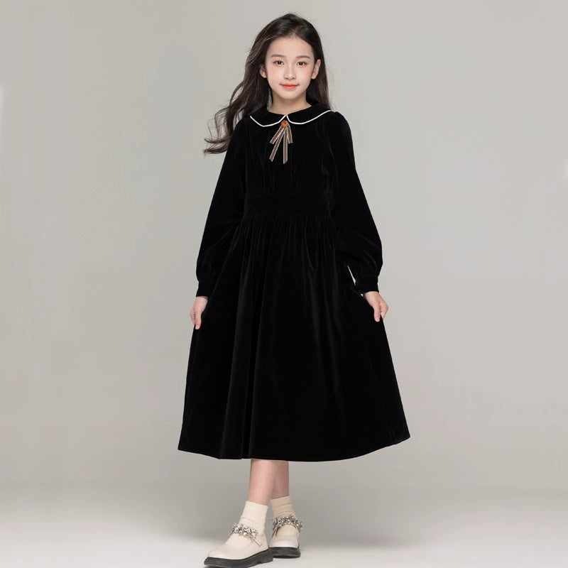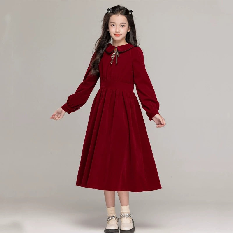 Girls’ Doll Collar Solid Color Princess Dress