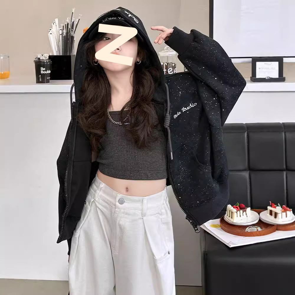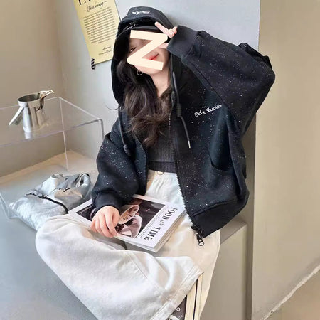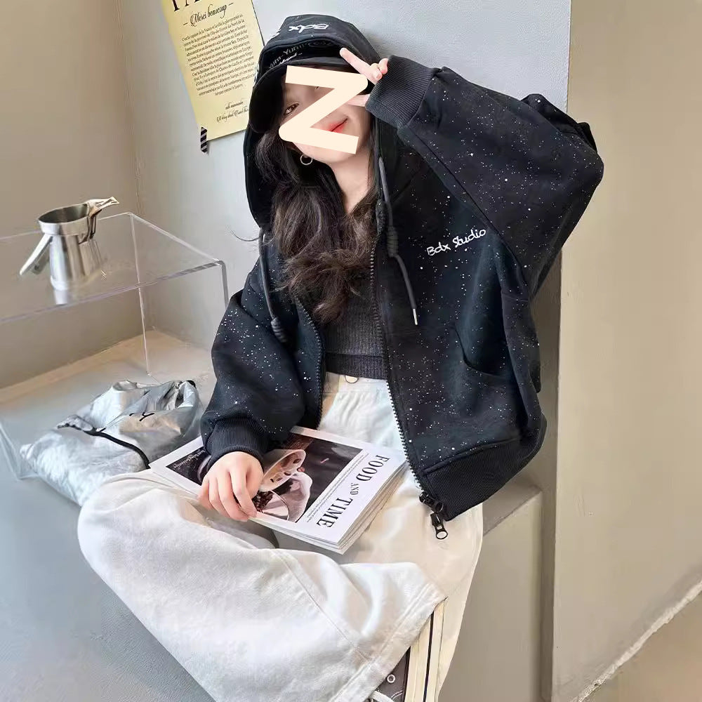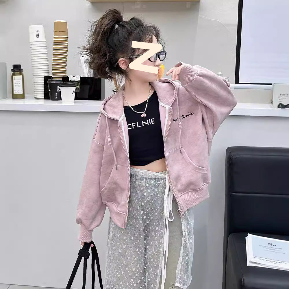 Girls’ Sparkling Letter Hoodie – Stylish Autumn Zipper Jacket