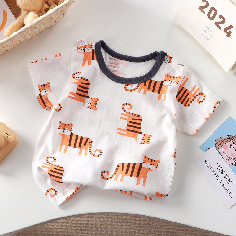 Made from high-quality sweat-absorbent cotton, it helps keep babies dry and comfortable during playtime, naps, or daily activities. The half-sleeve design and solid color style make it easy to match with shorts, skirts, or leggings for a cute and simple summer look 👕✨