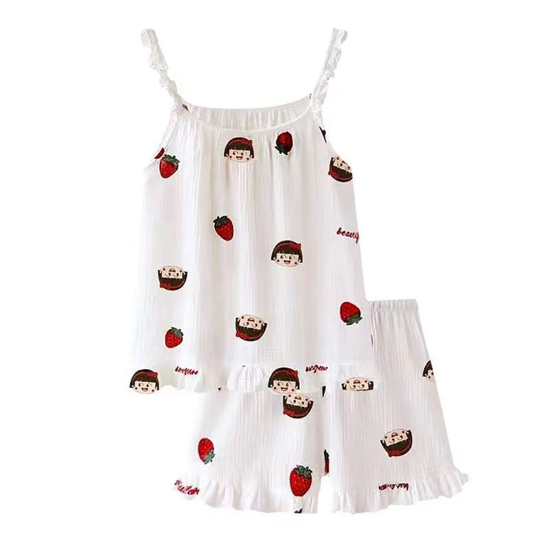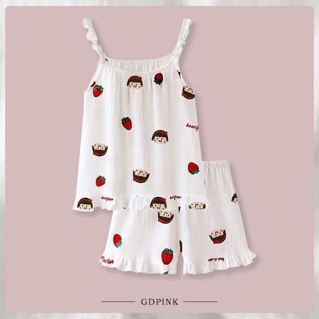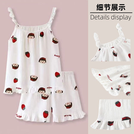 Girls Summer Ice Silk Pajamas | Thin Sling Homewear