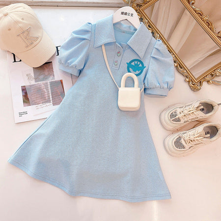 The collared polo neckline adds a neat and polished touch, while the flared skirt design keeps it youthful and fun — perfect for school, outings, or weekend adventures! 🧒✨ Made from soft, breathable cotton-blend fabric, it ensures all-day comfort even in warm weather. 🌼🌈