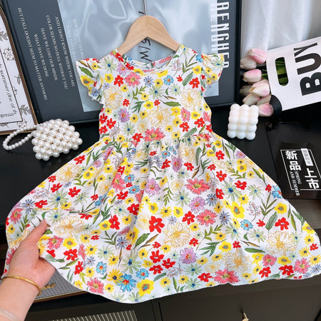 Add a touch of magic to her summer with this Girls' Flying Sleeve Princess Floral Dress! Designed for little fashionistas, this adorable dress features elegant flying sleeves and a beautiful floral print that captures the joy of the season 💐👧.