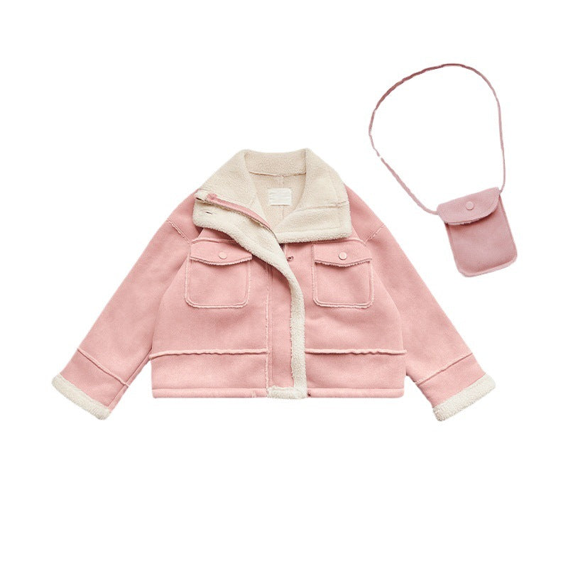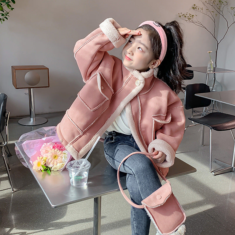 Girls’ Plush Fur Coat – Winter Fleece-Lined Jacket