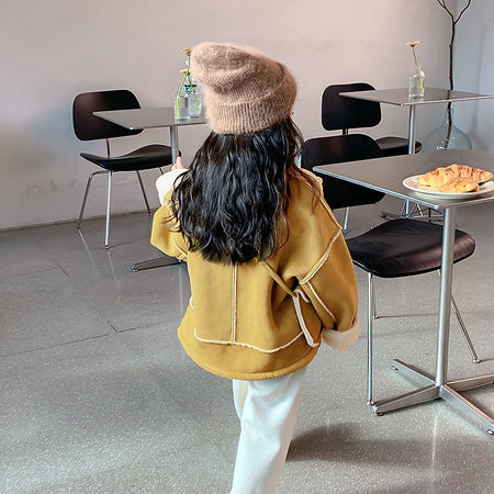Keep her warm and stylish this season with our Girls’ Plush Fur Coat ❄️. Designed with thick fleece lining, this jacket offers cozy comfort while showing off a chic Western-style look.