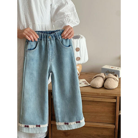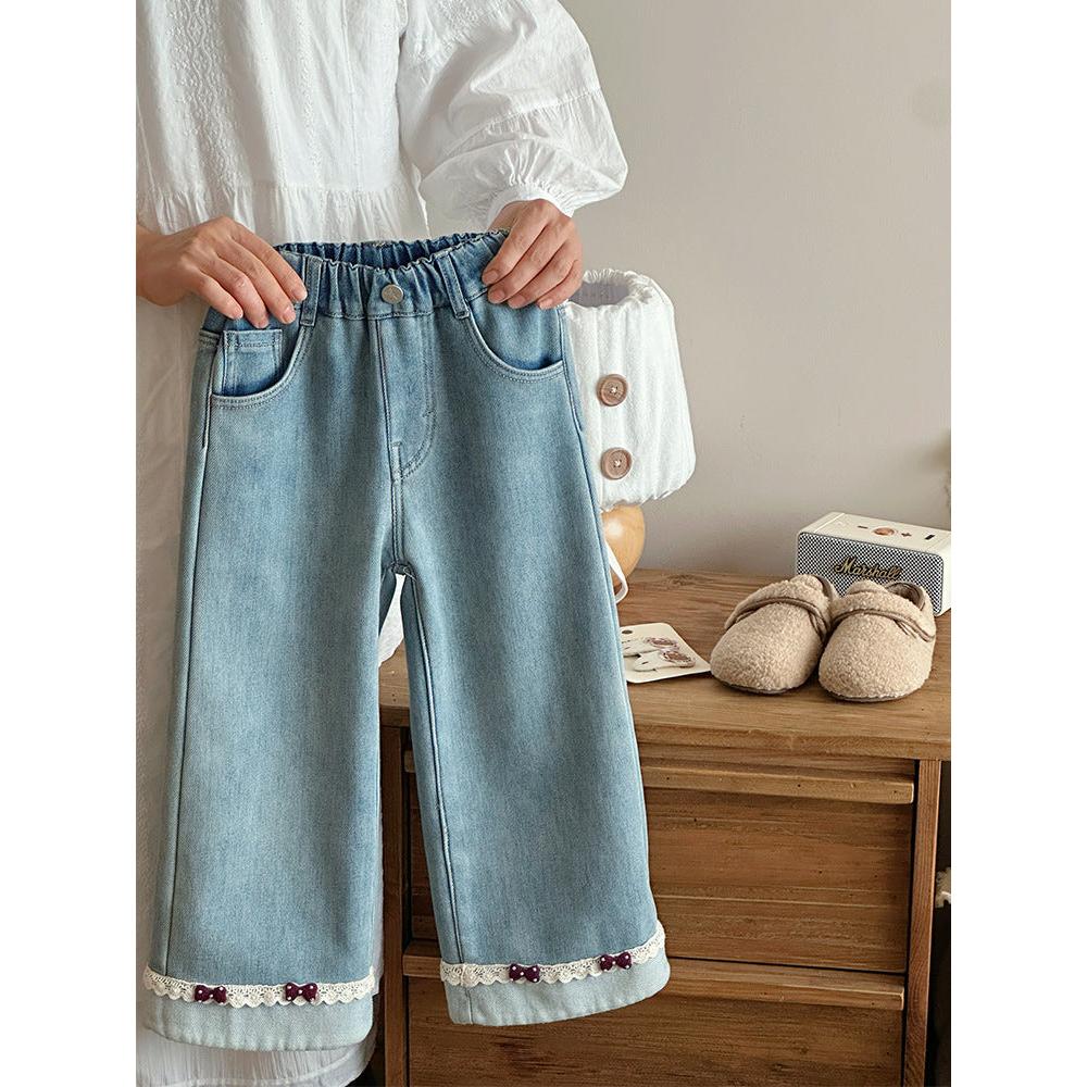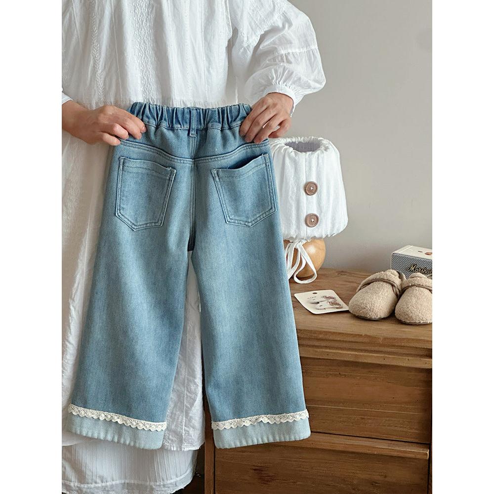 Keep girls warm and stylish with these loose straight fleece-lined jeans, made for comfort and daily wear 👖❄️
