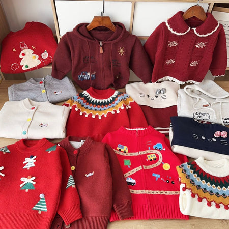 Girls Fleece-Lined Red Winter Sweater – New Year 2025