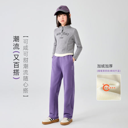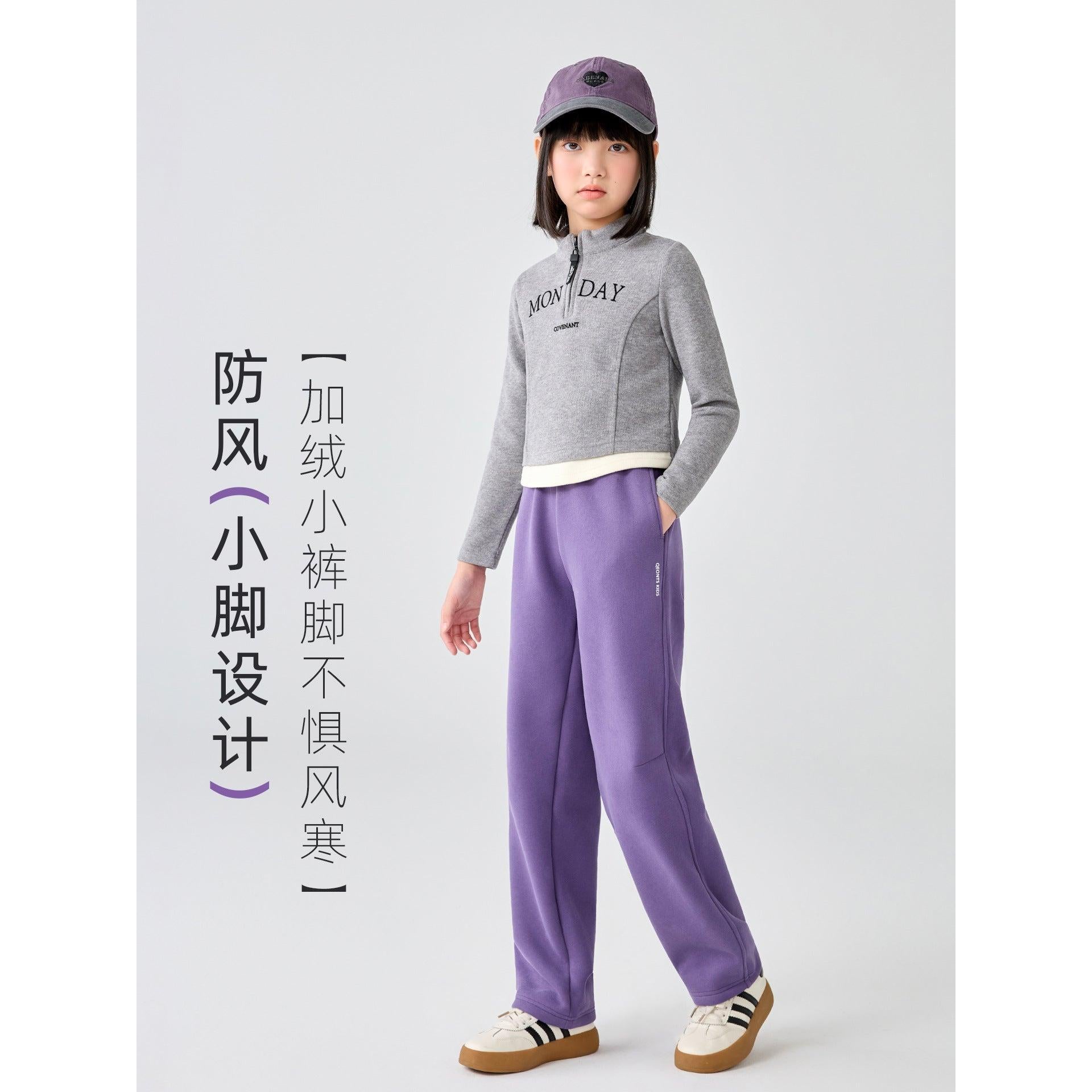 Girls' Fleece-Lined Straight-Leg Pants 2025 Autumn Winter Casual