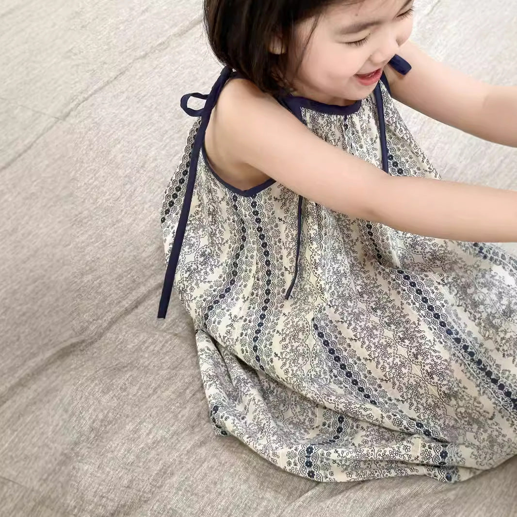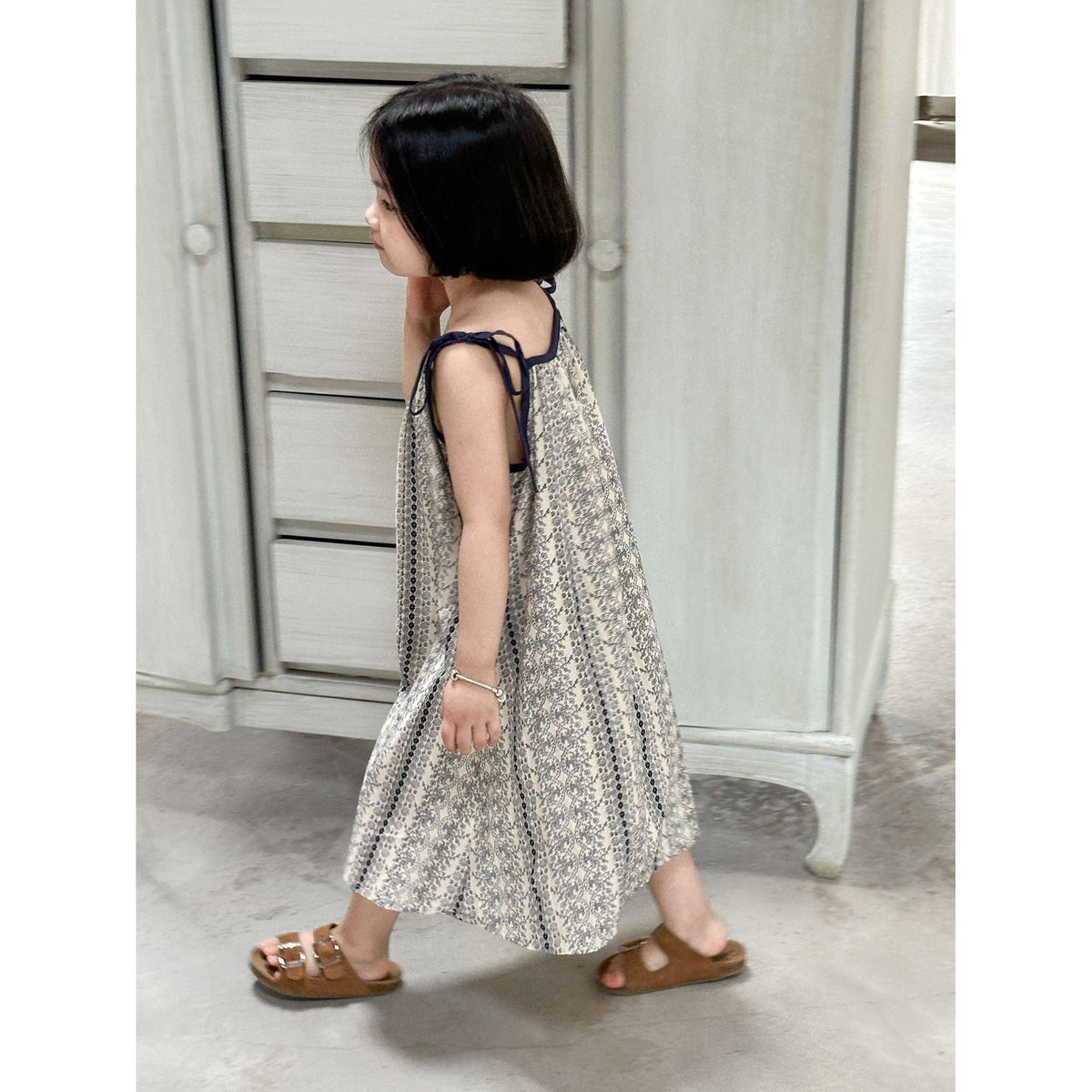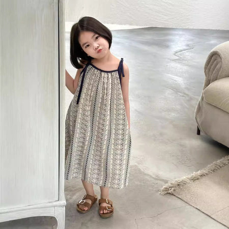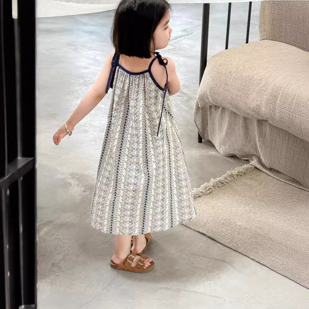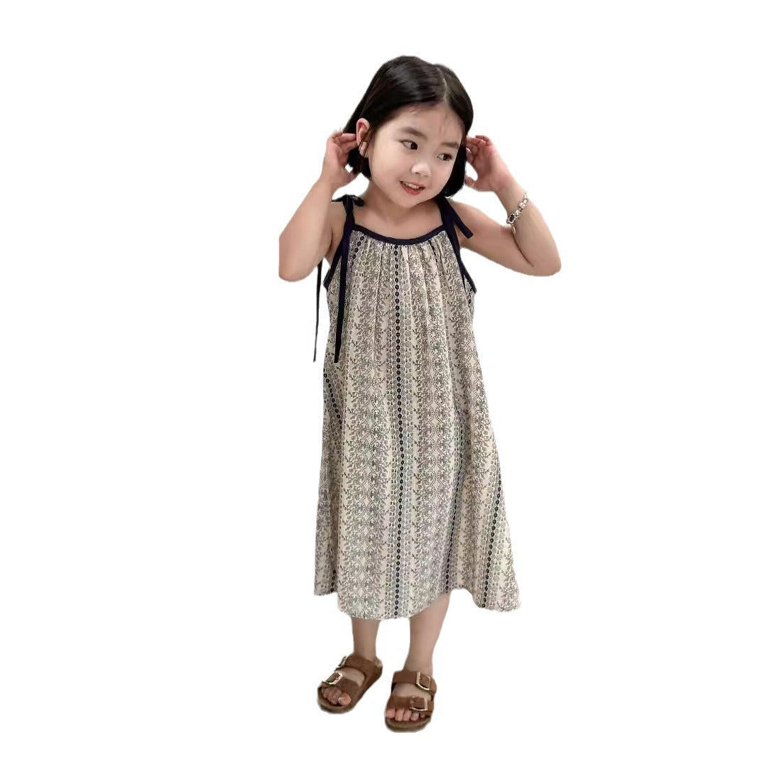 Girls' Floral Lace-Up Dress – 2024 Korean Summer Style