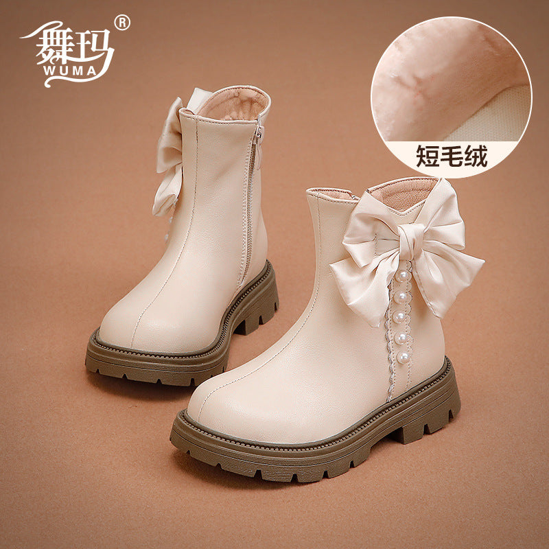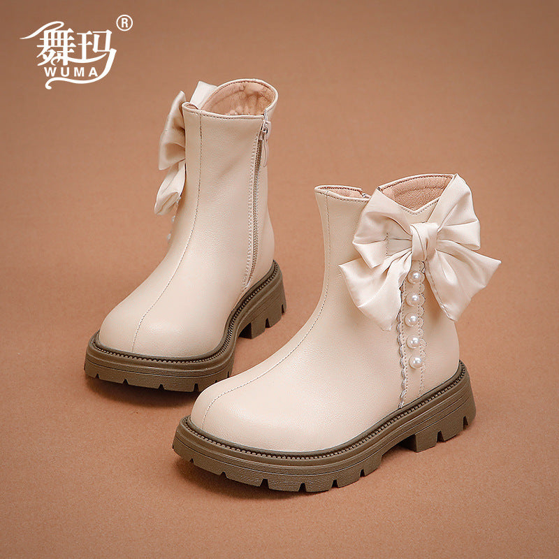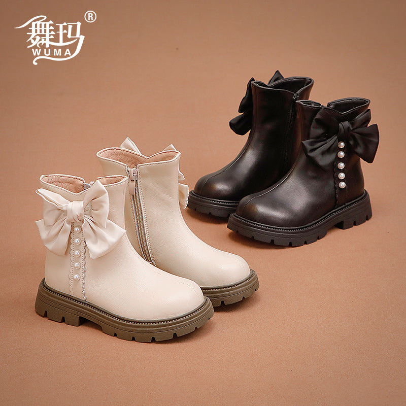 Girls Genuine Leather Princess Martin Boots Winter