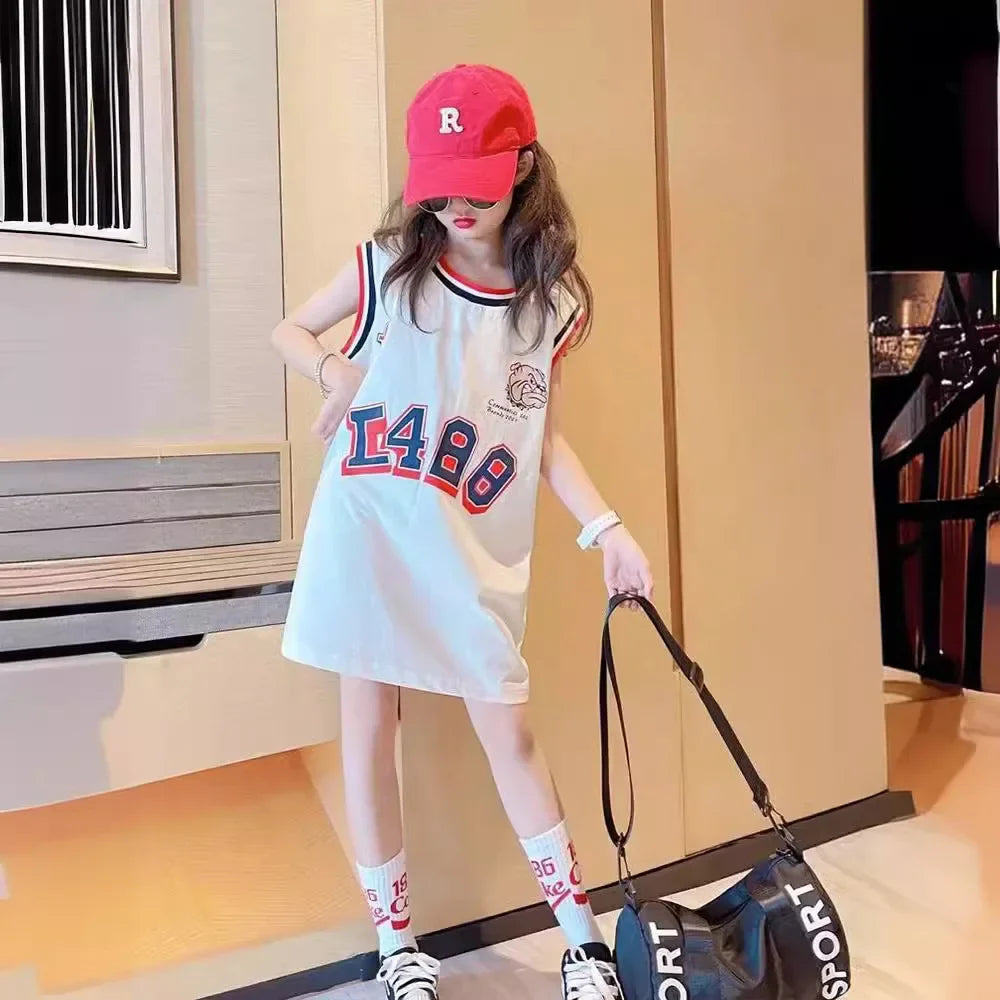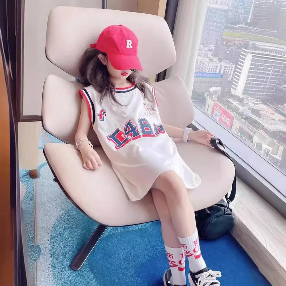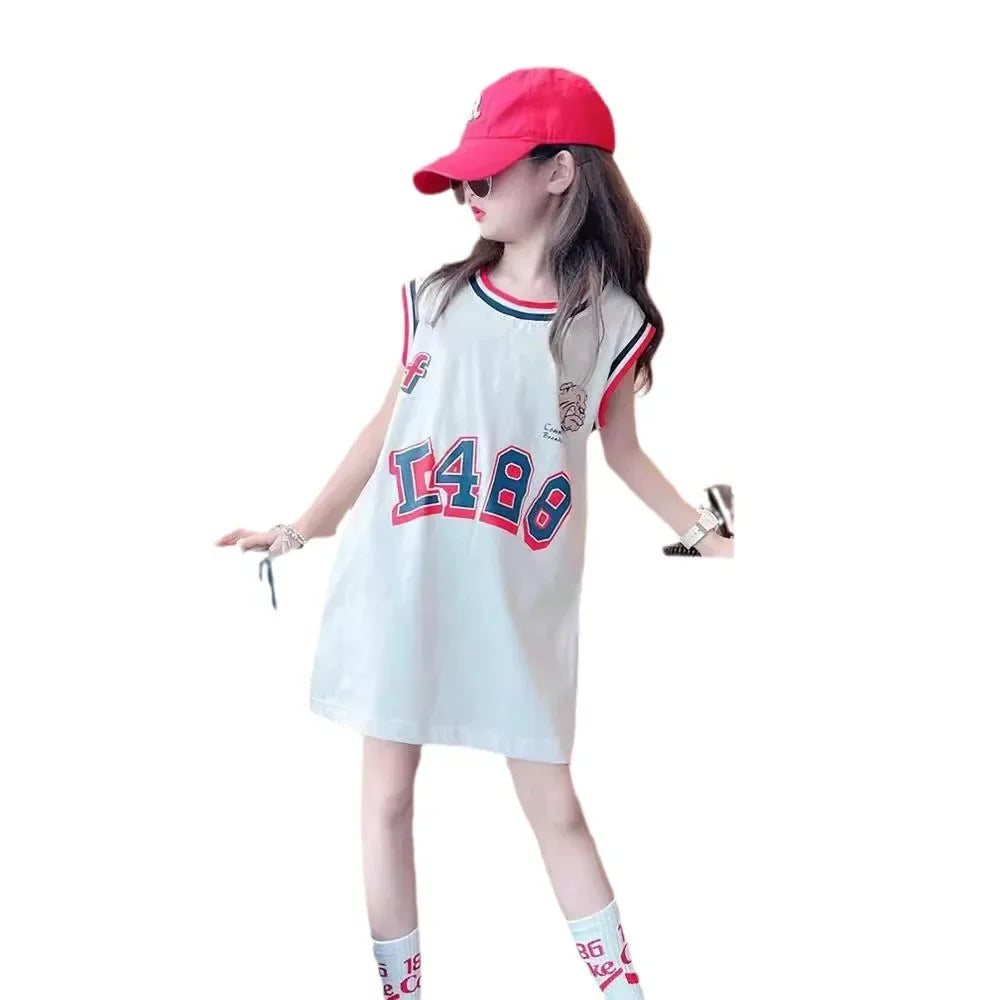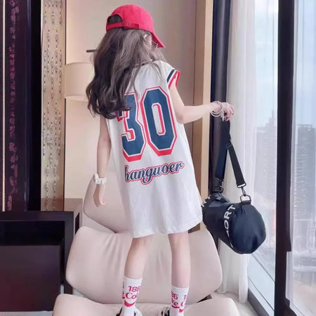 Girls’ Ice Silk Dress – 2024 Summer Vacation T-Shirt Dress