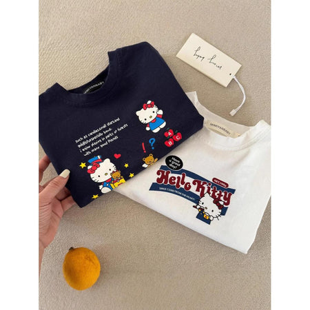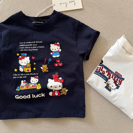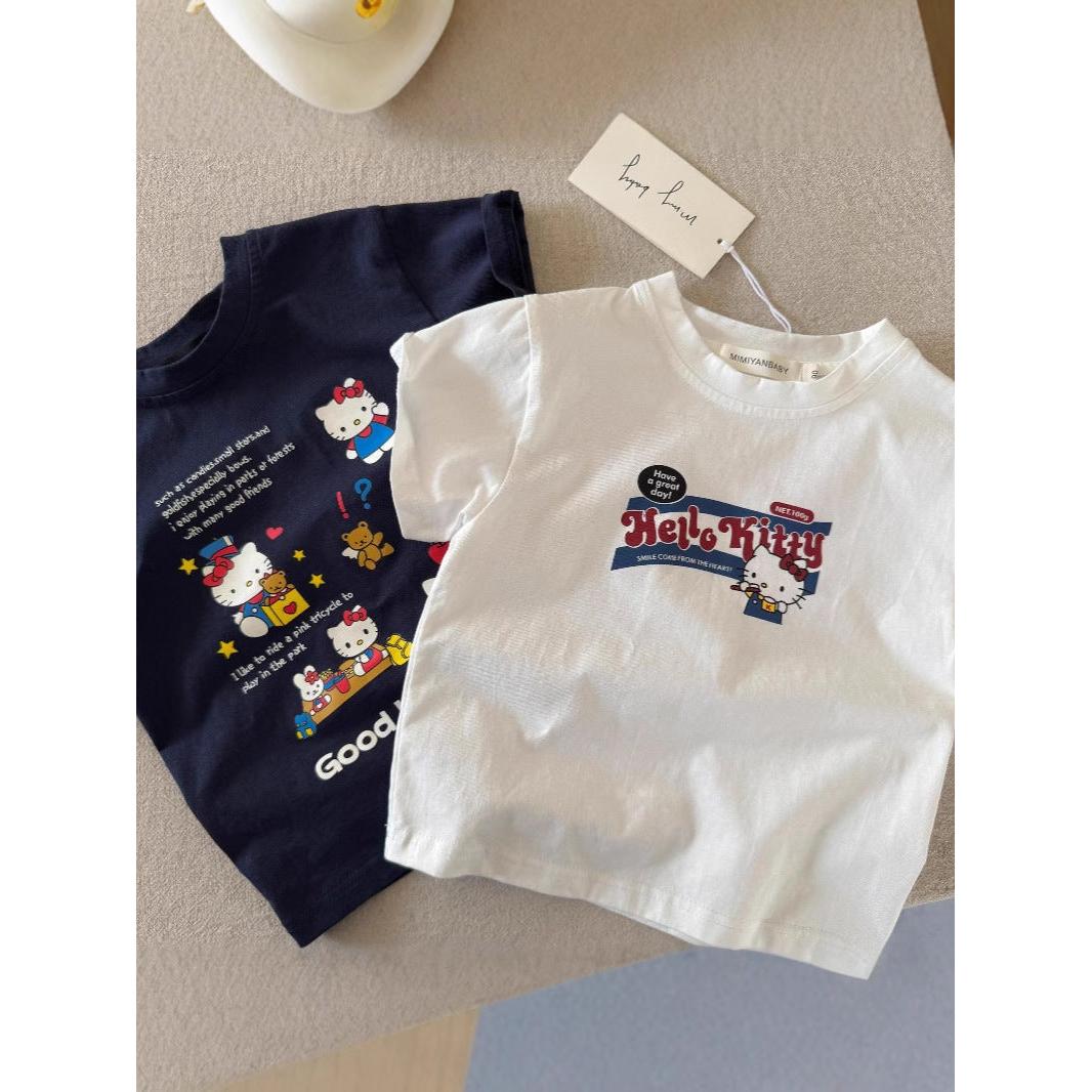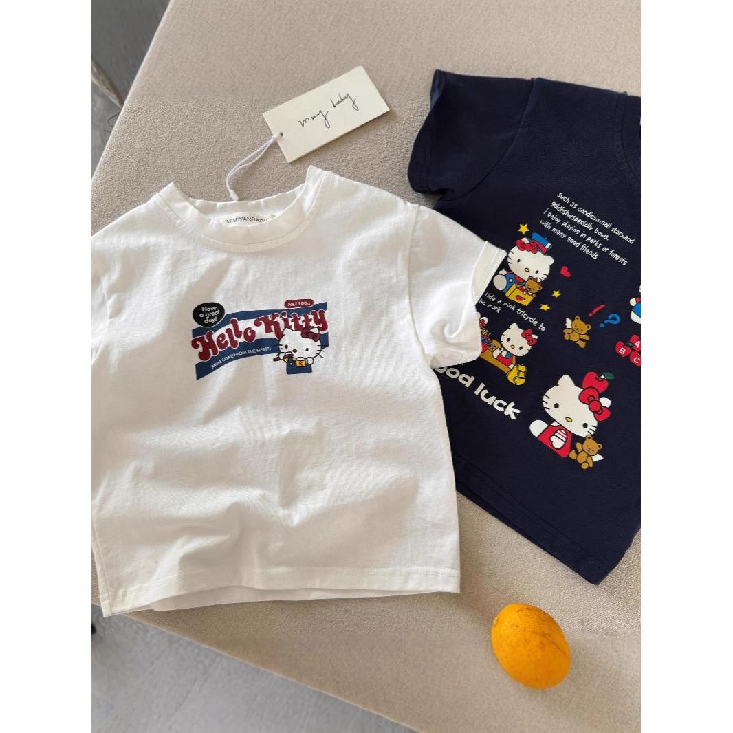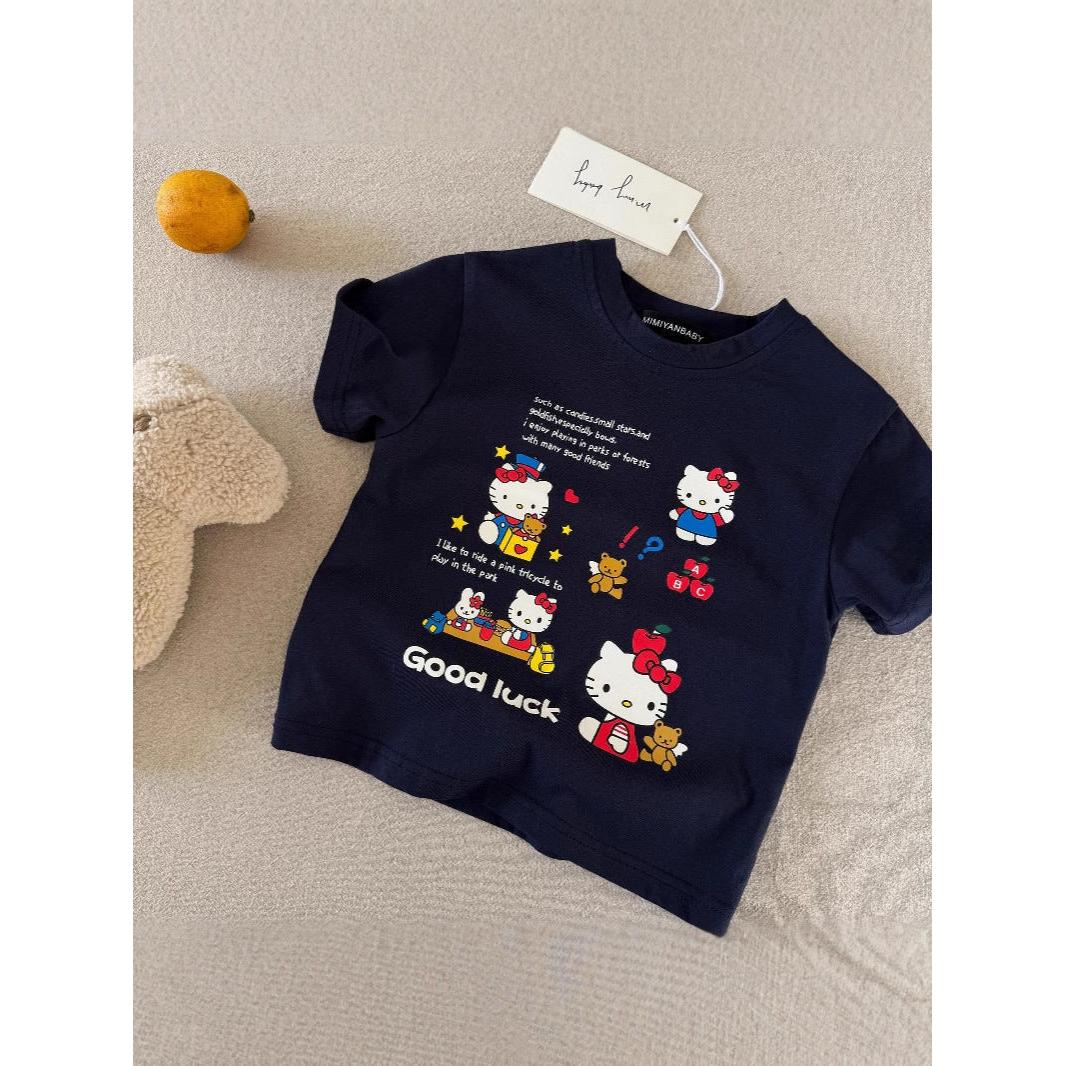 Girls Korean Style KT Cat Cotton Summer T-Shirt 2025