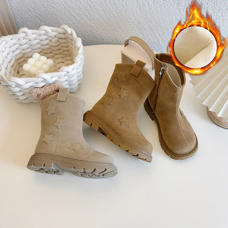 Step into autumn and winter 2024 with our trendy girls’ Western-style Martin boots—perfect for Nepal’s chilly seasons! 🍂👧 These Korean-inspired mid-calf boots feature a stylish five-pointed star design, adding a fun and fashionable touch to any outfit. ⭐🖤 Made with warm cotton padding, they provide cozy insulation against cold weather, ideal for school, family outings, or casual wear. The durable build and comfortable fit ensure long-lasting wear through busy days and outdoor adventures. 🌨️🧥 Designed to keep little feet warm while complementing various styles, these Maillard long boots are perfect for girls who love a mix of trendy and classic looks. Suitable for urban and hill regions like Kathmandu and Pokhara, they offer both style and function. Wholesale options available to help Nepalese retailers meet the demand for fashionable and reliable children’s winter footwear. 🇳🇵🛍️