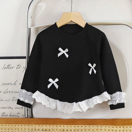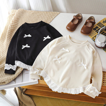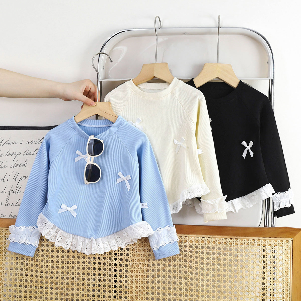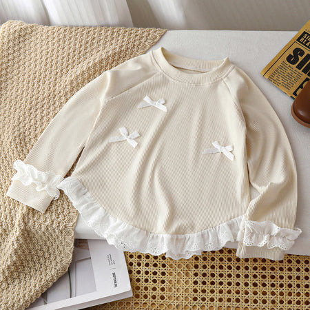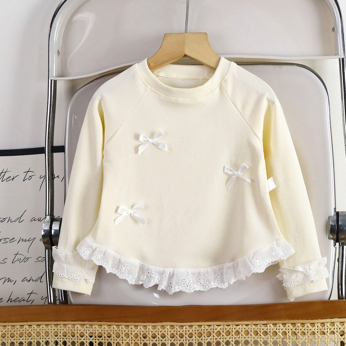 Girls’ Bow Lace Long-Sleeve Bottoming T-Shirt