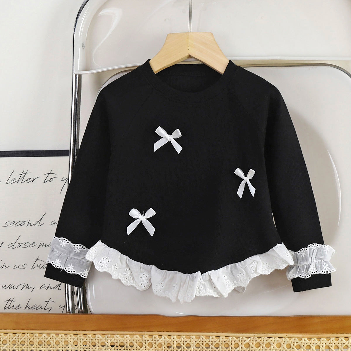Add a touch of charm to your child’s wardrobe with this girls’ bow lace long-sleeve bottoming T-shirt. Perfect for spring and fall, it combines sweet style with soft, comfortable cotton. 🌸
