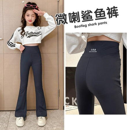 Girls’ Elastic Shark Pants – Thin Spring & Summer Leggings