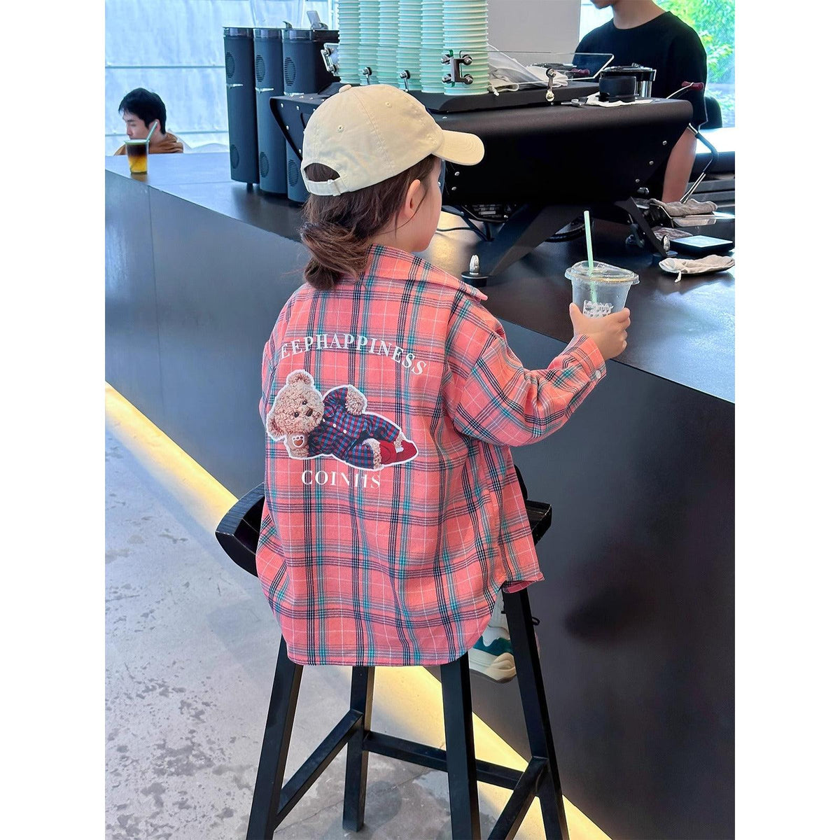 Girls' Plaid Shirt Long Sleeve 2025 Spring Fall Top