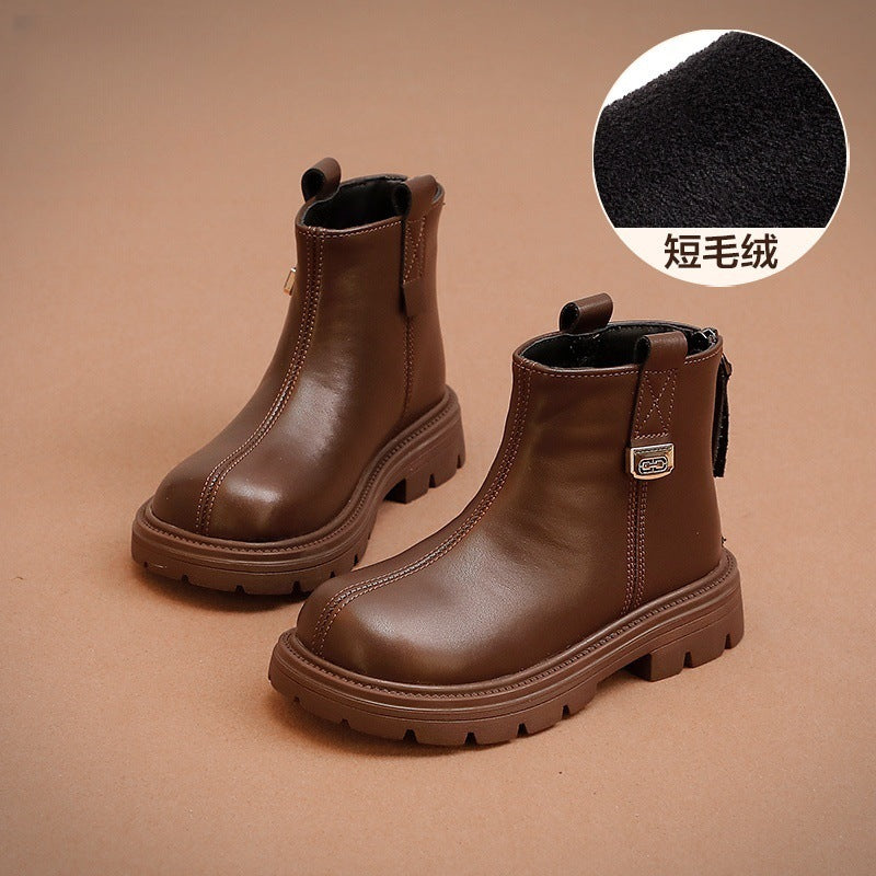 Girls Princess Leather Short Boots Fleece-Lined 2025