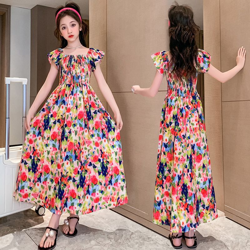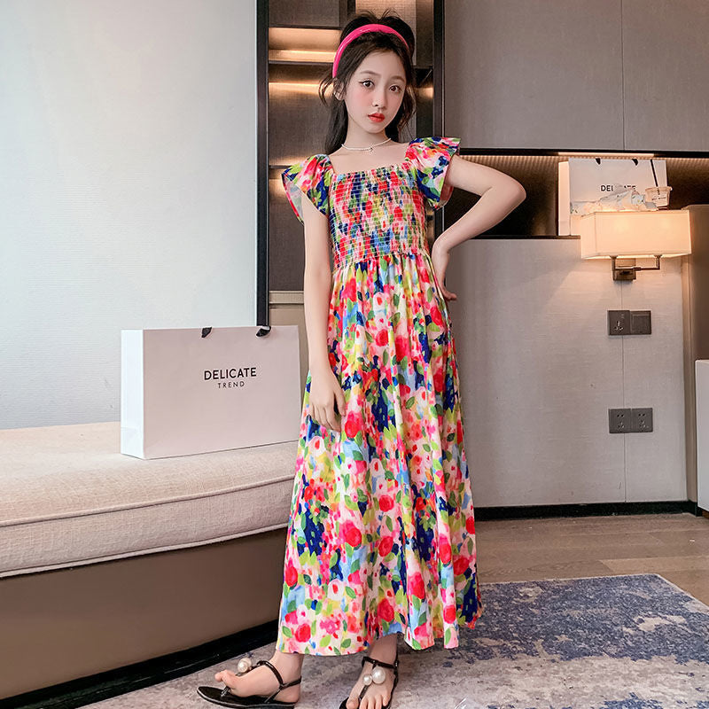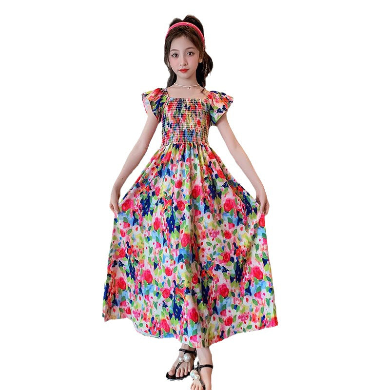 Girls' Retro Oil Painting Dress – Summer Beach Style 2025