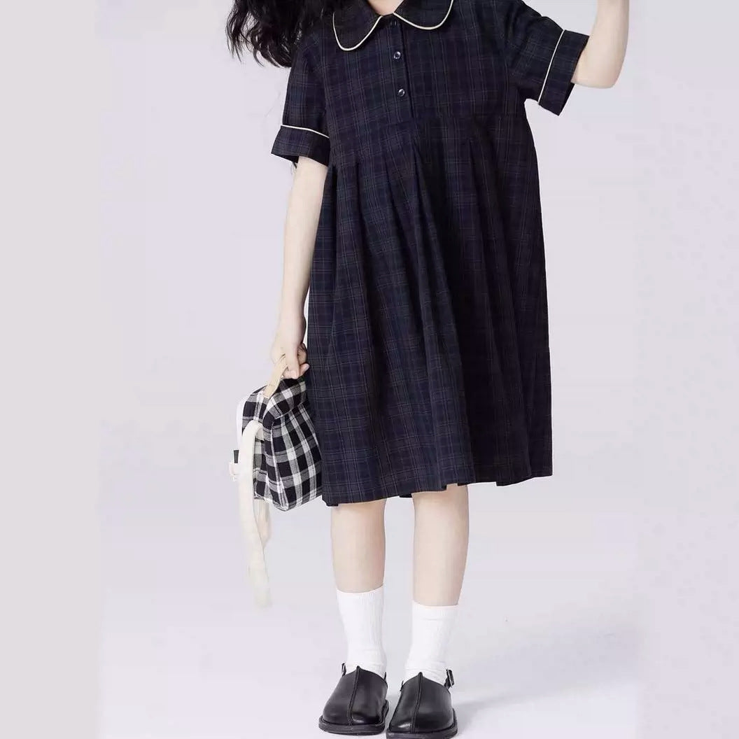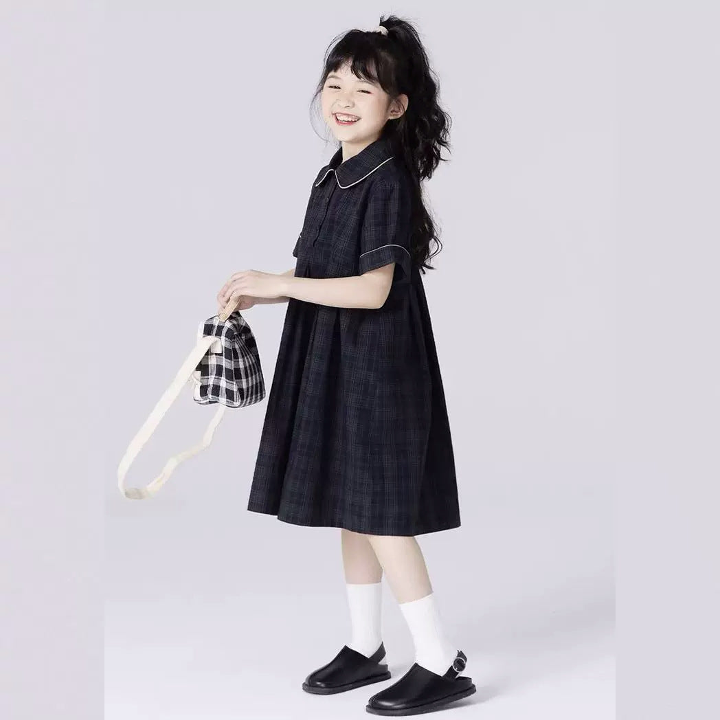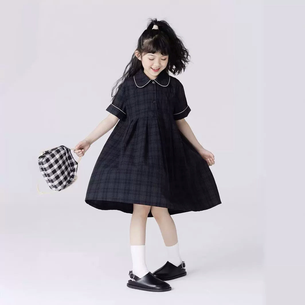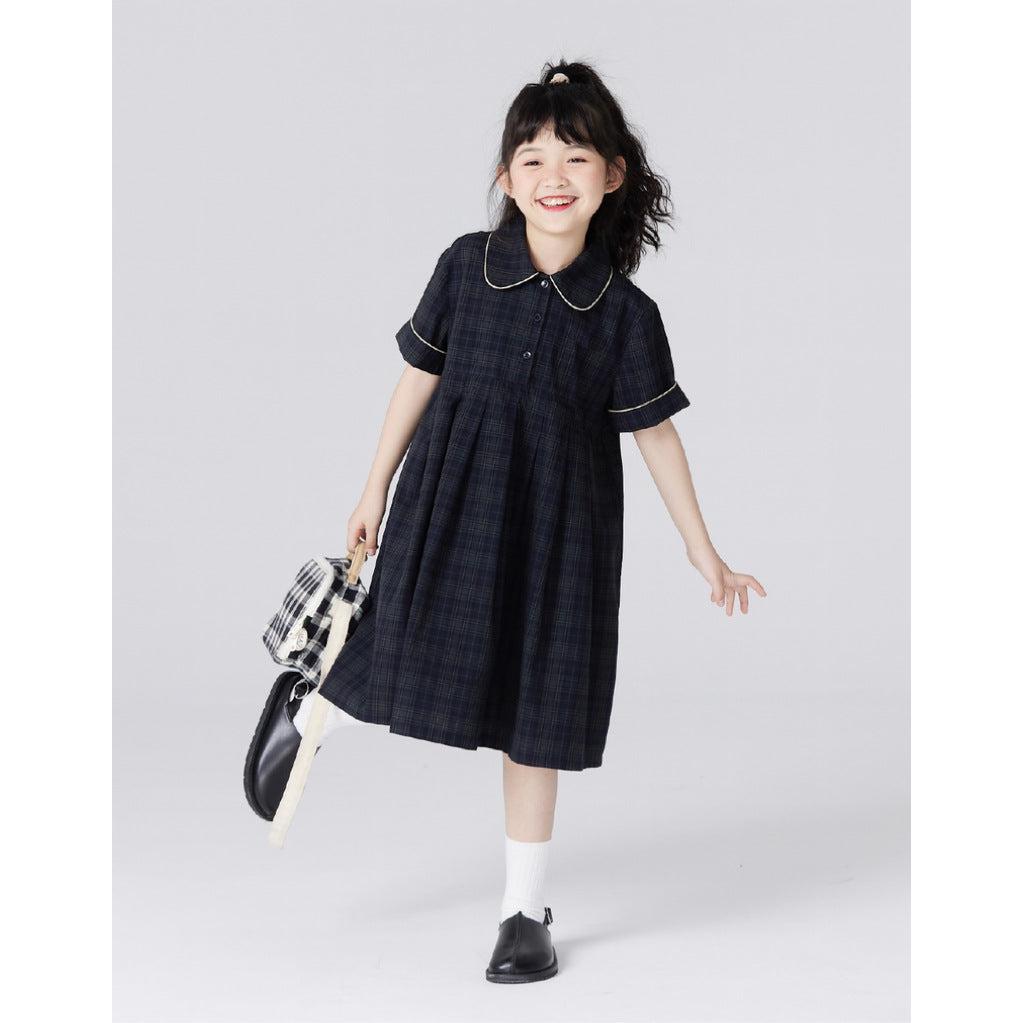 Girls' Retro Plaid Doll Collar Dress β Summer Cute Look