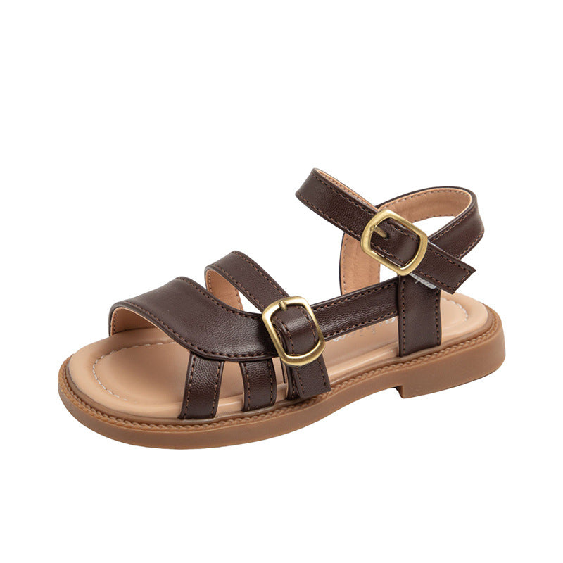 The soft cushioned sole supports growing feet, while the breathable design keeps them cool on warm days 🌬️. The Roman straps provide both a secure fit and a fashionable flair, making them easy to pair with dresses, skirts, or shorts.