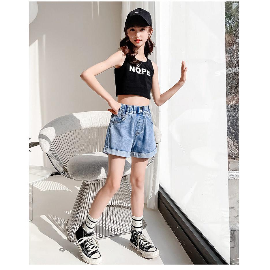 Girls' Simple Denim Shorts 2024 Summer Casual Loose Pants