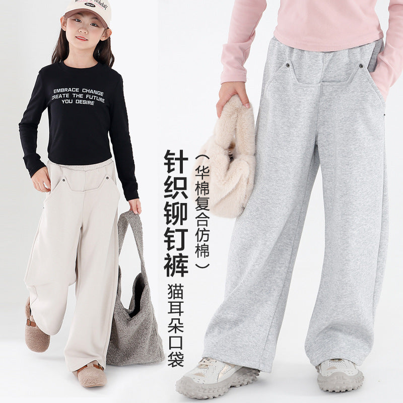 Girls Loose Wide Leg Sports Pants Spring Autumn