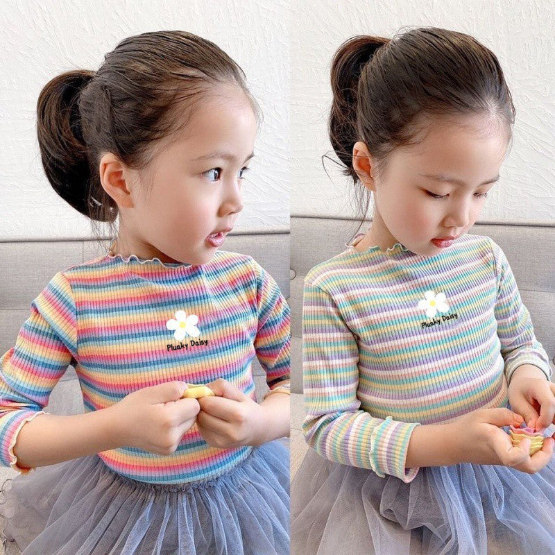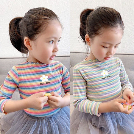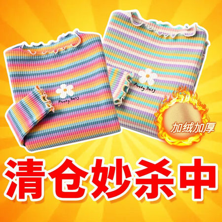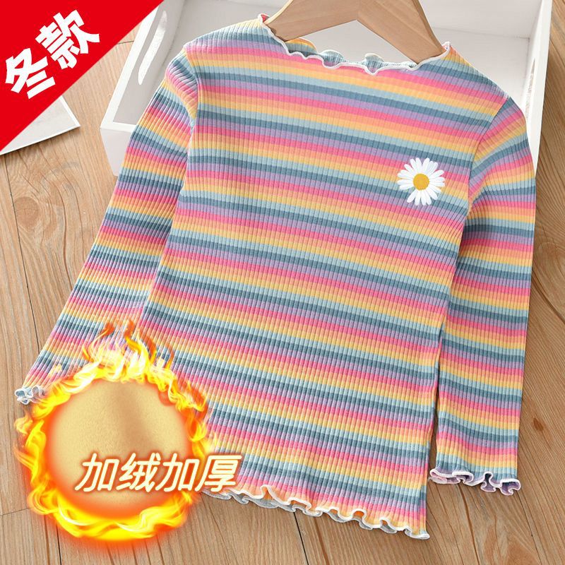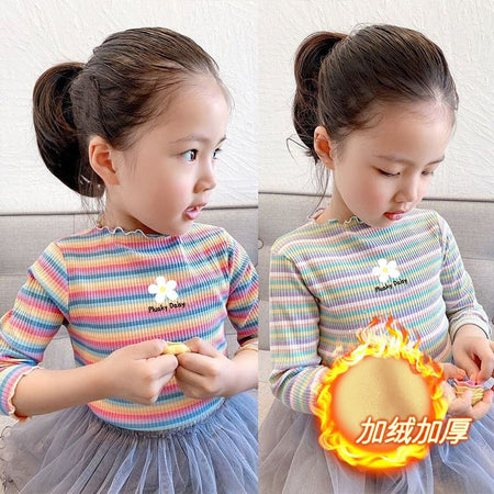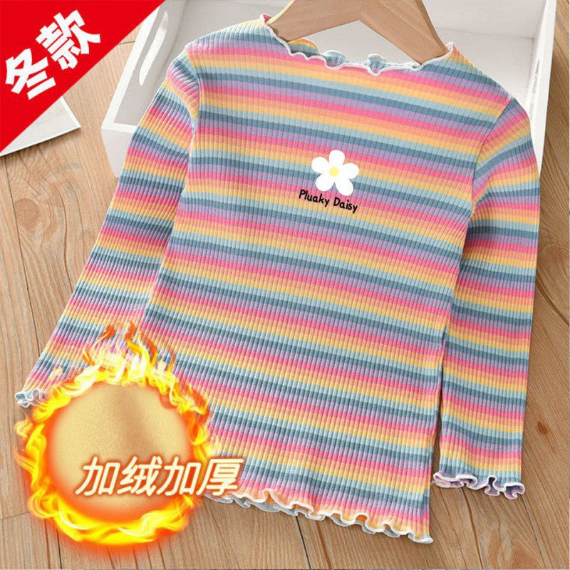 Girls’ Autumn & Winter Velvet Striped T-Shirt