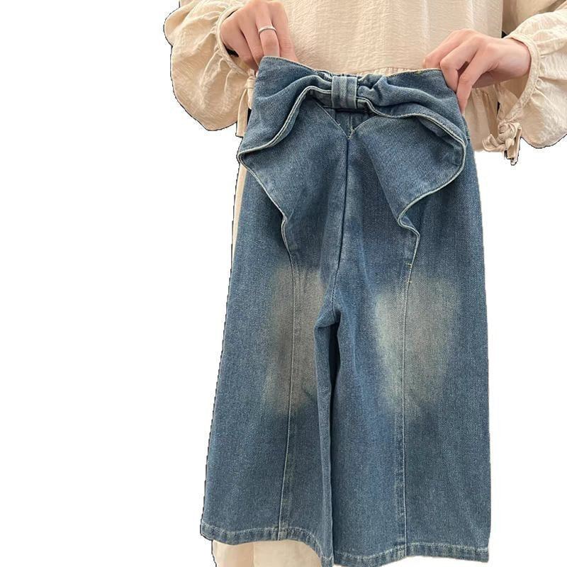 Girls’ Korean-Style Bow Wide-Leg Jeans