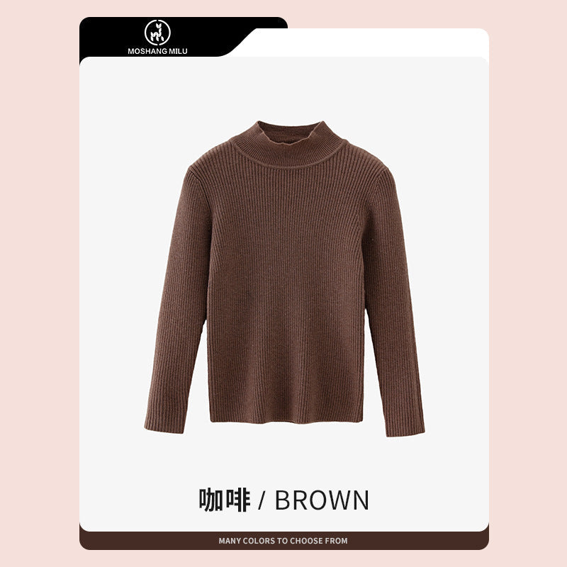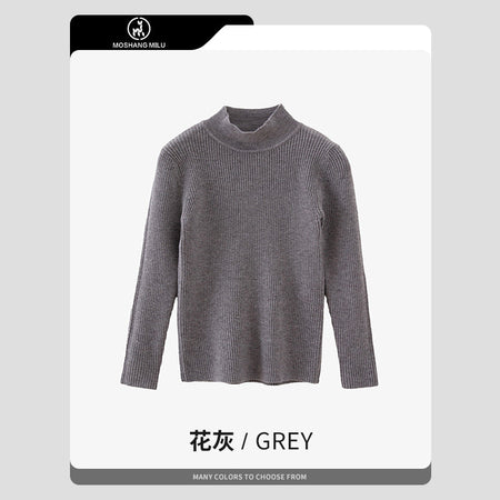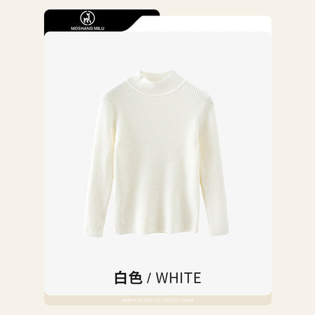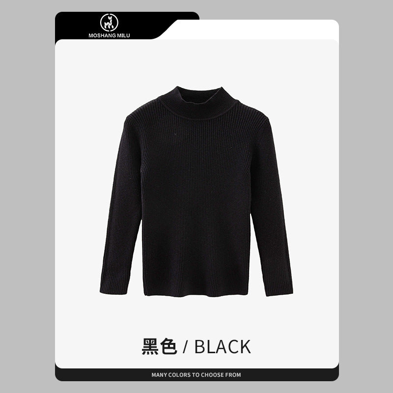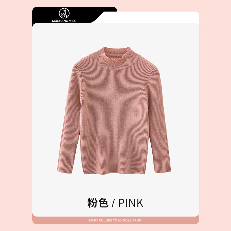 Girls’ Half Turtle Collar Pullover Sweater Autumn