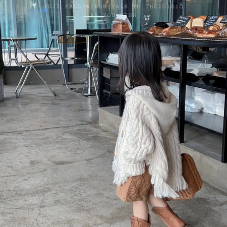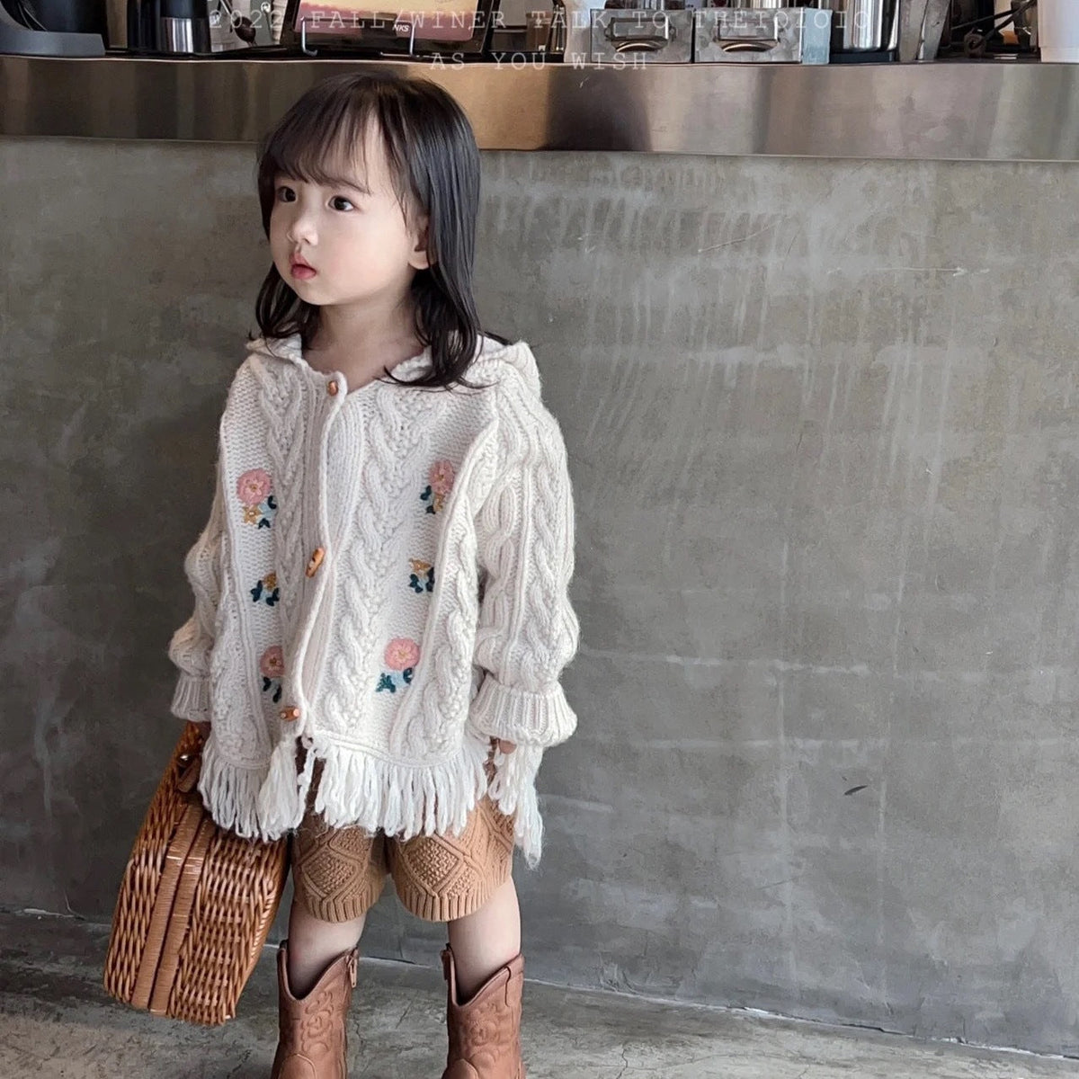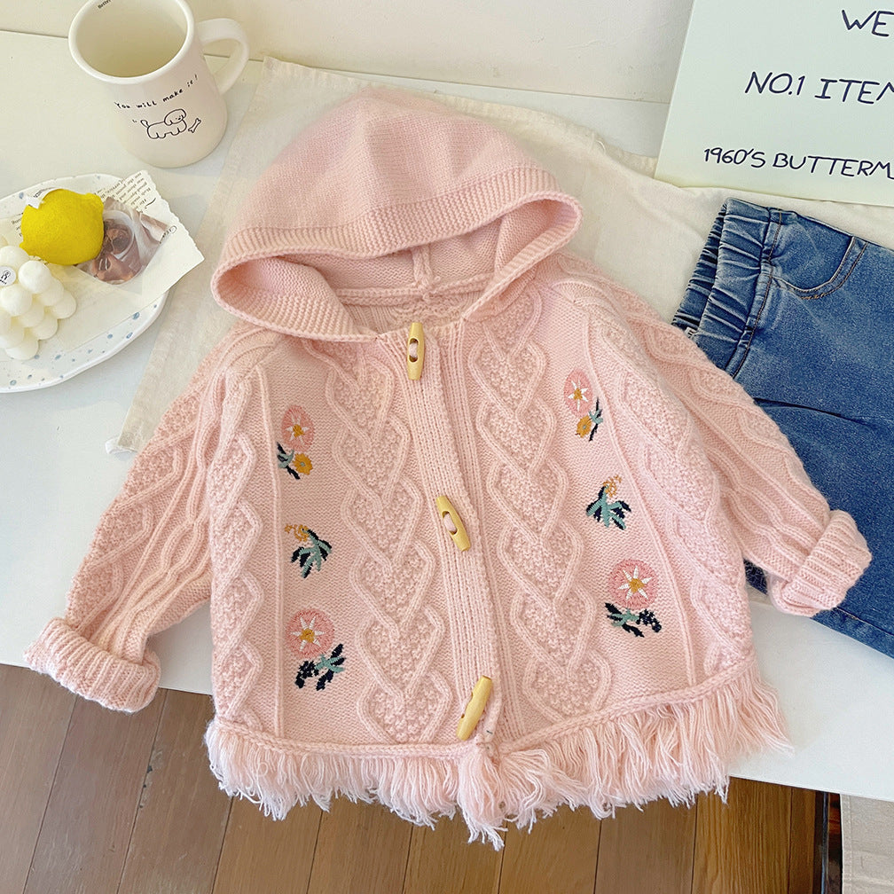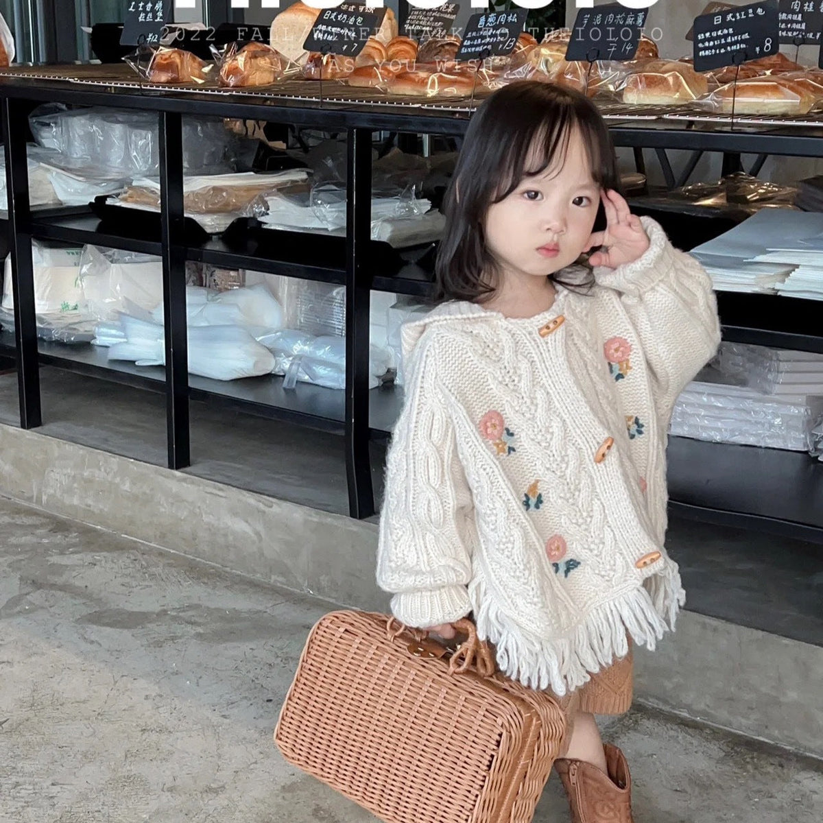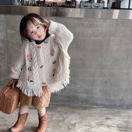 Girls’ Embroidered Tassel Sweater Cardigan Autumn Winter