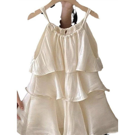 Crafted from soft, breathable, and lightweight fabric, this dress ensures your child stays cool and comfortable during hot summer days ☀️💖. The sweet vest-style top pairs beautifully with a cake-style layered skirt, giving a flowing fairy-like silhouette that moves gracefully as your child plays or dances. Its elegant and cute design adds charm and makes every little girl feel special.