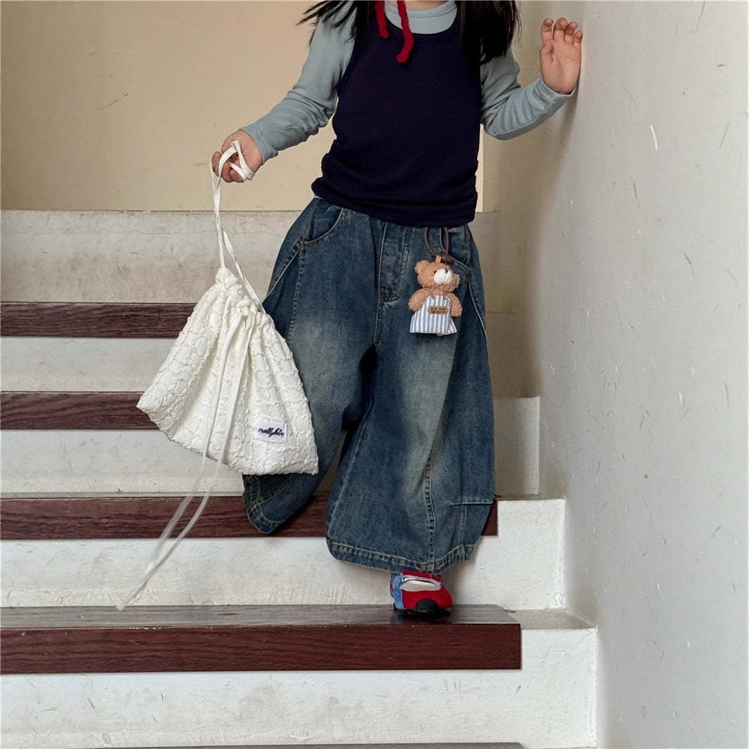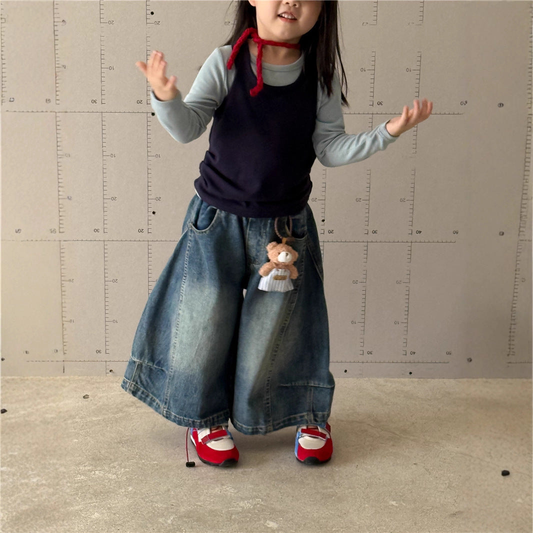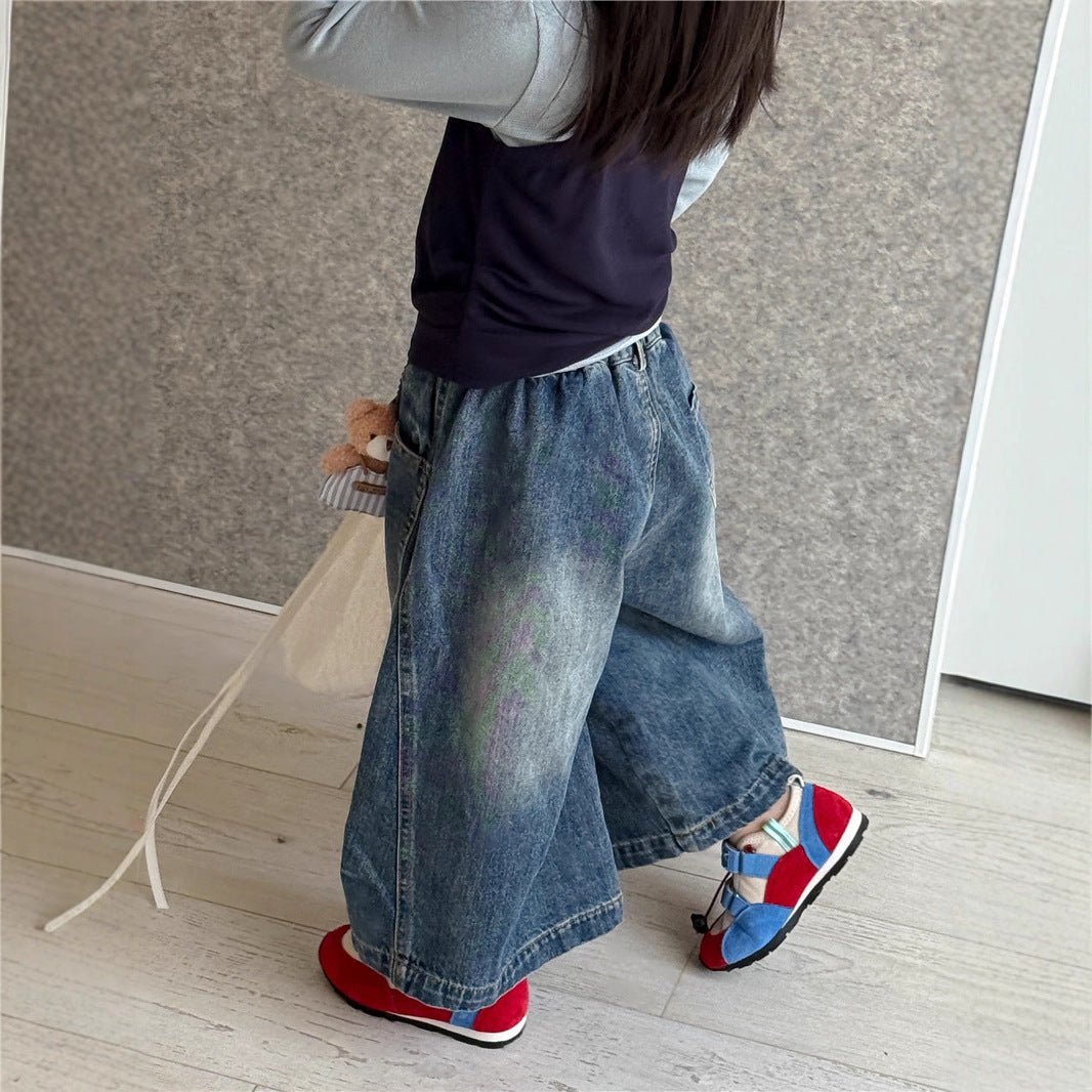 Girls' Wide-Leg Jeans β Sweet Tea Mom 2025 Autumn Korean Style