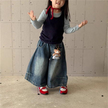 Perfect for playgrounds, family outings, school, or indoor play, these wide-leg jeans keep your child cozy and fashionable. The durable denim ensures long-lasting wear, while the trendy design makes dressing fun and stylish.