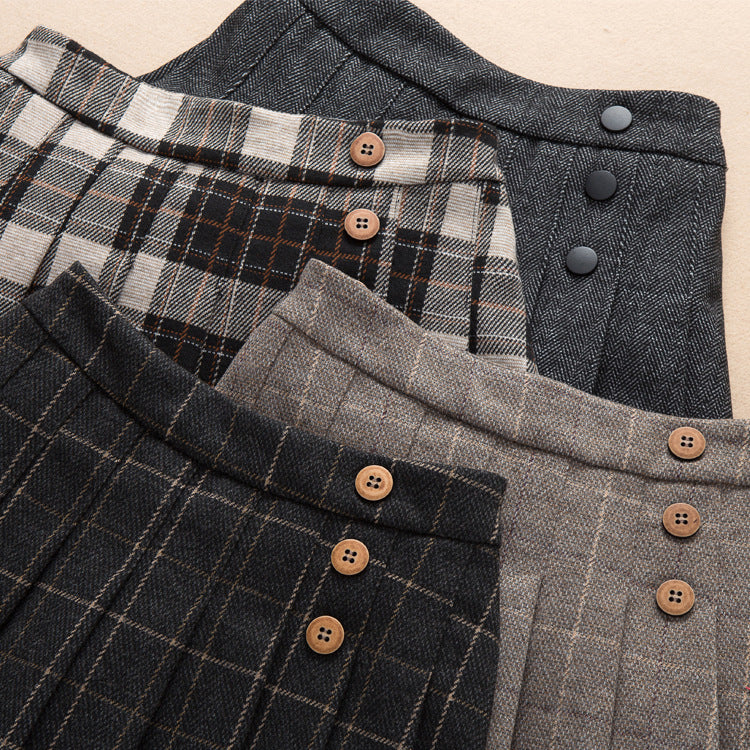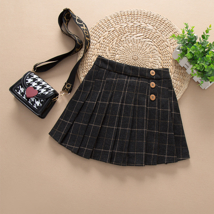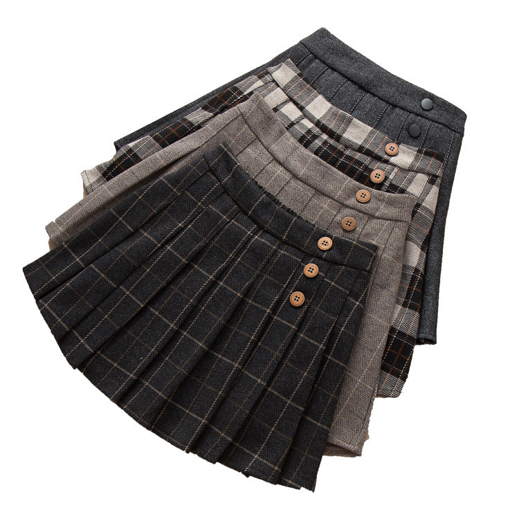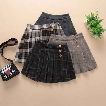 Girls Woolen JK Pleated Plaid Skirt Autumn Winter