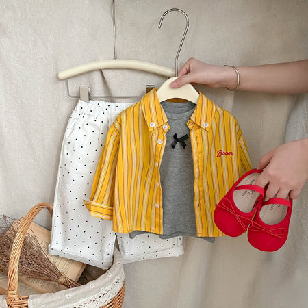 Girls' Yellow Striped Shirt 2025 Korean Style Kids Top