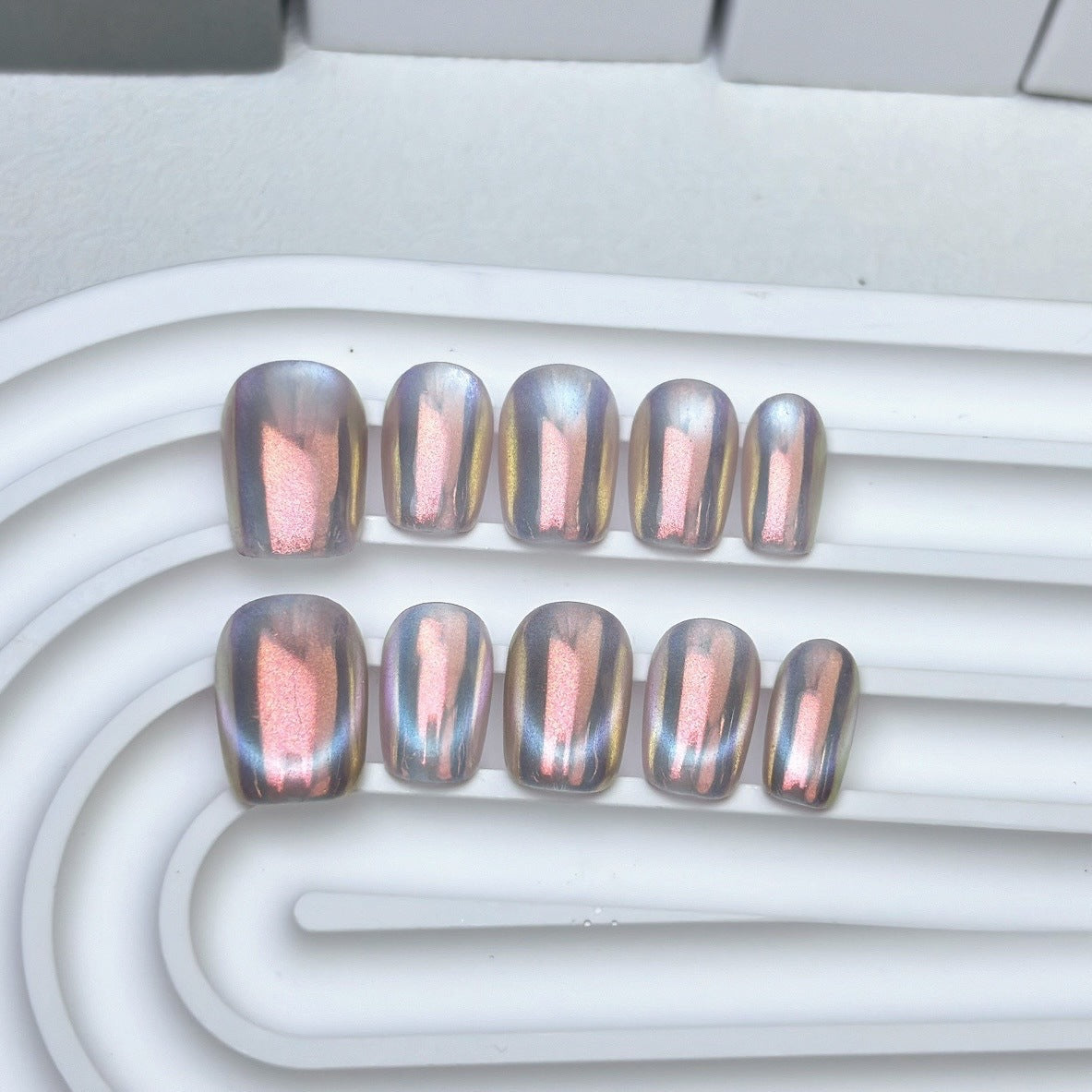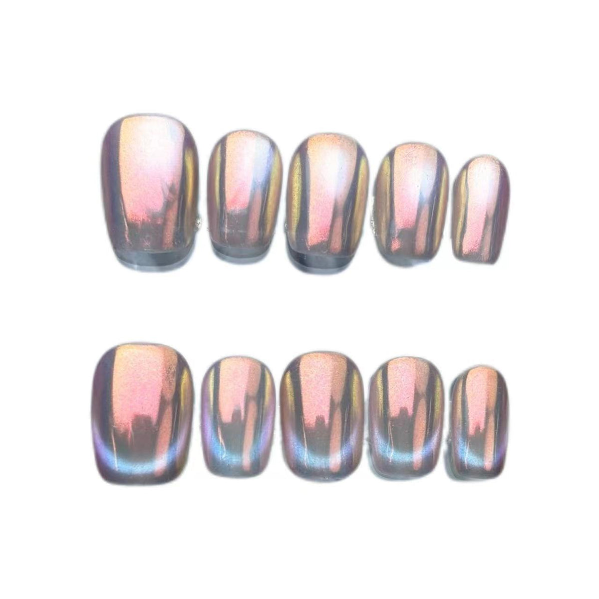🌈 Bring the magic of light to your nails with “Glass Beads Cat’s Eye” Rainbow Press-ons – shiny, vibrant, and pure ✨!