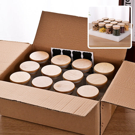 12-Piece Glass Seasoning Jar Set with Bamboo Lids