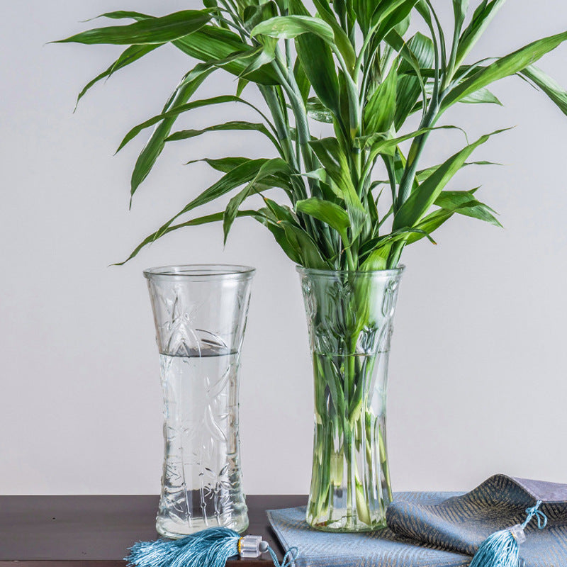 Large Transparent Glass Vase – Hydroponic Bamboo & Lily