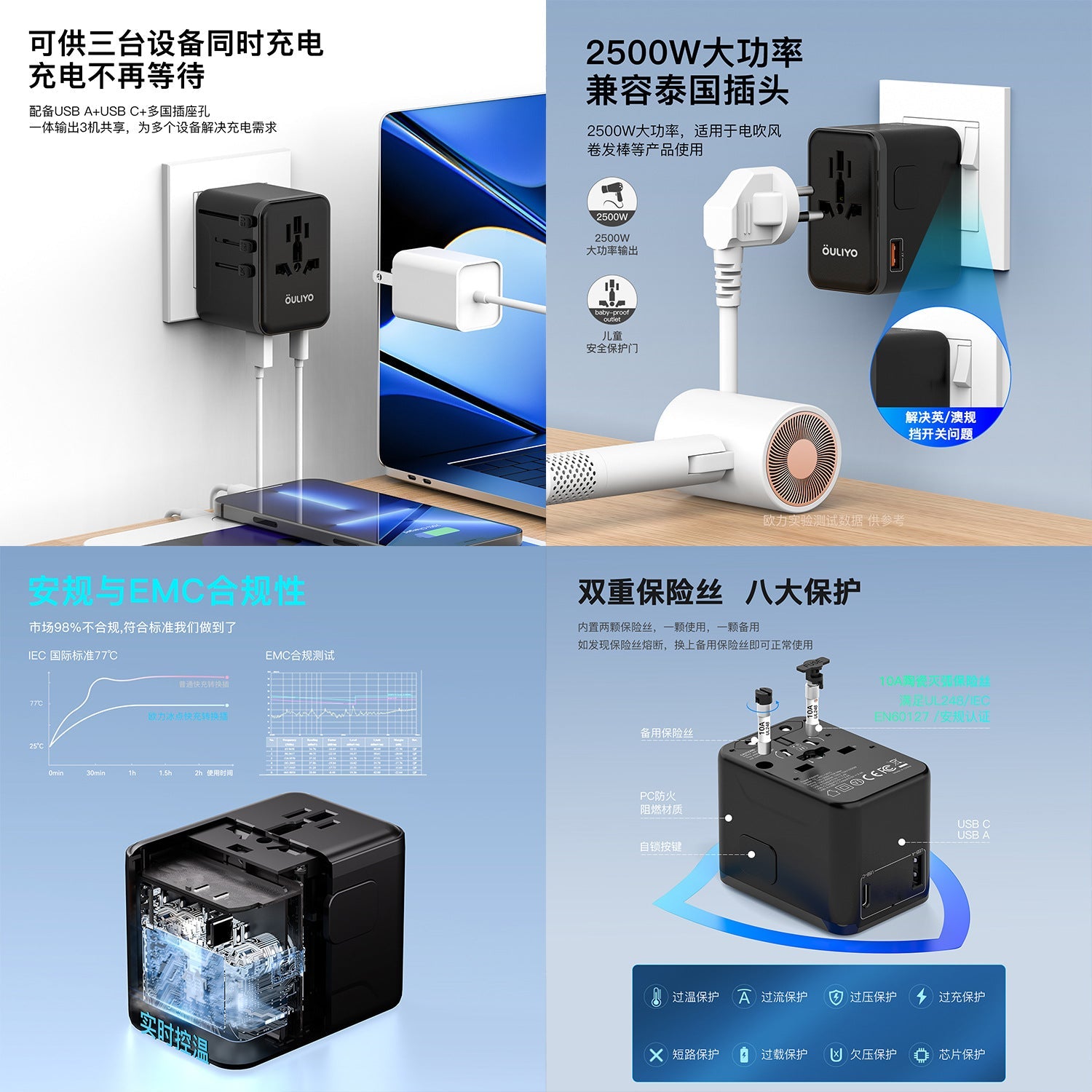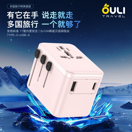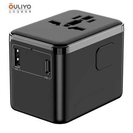 Equipped with 1 USB-A + 1 USB-C port, this adapter delivers 2.4A fast charging—perfect for powering phones, tablets, laptops, and more in over 150+ countries! ⚡📱💻